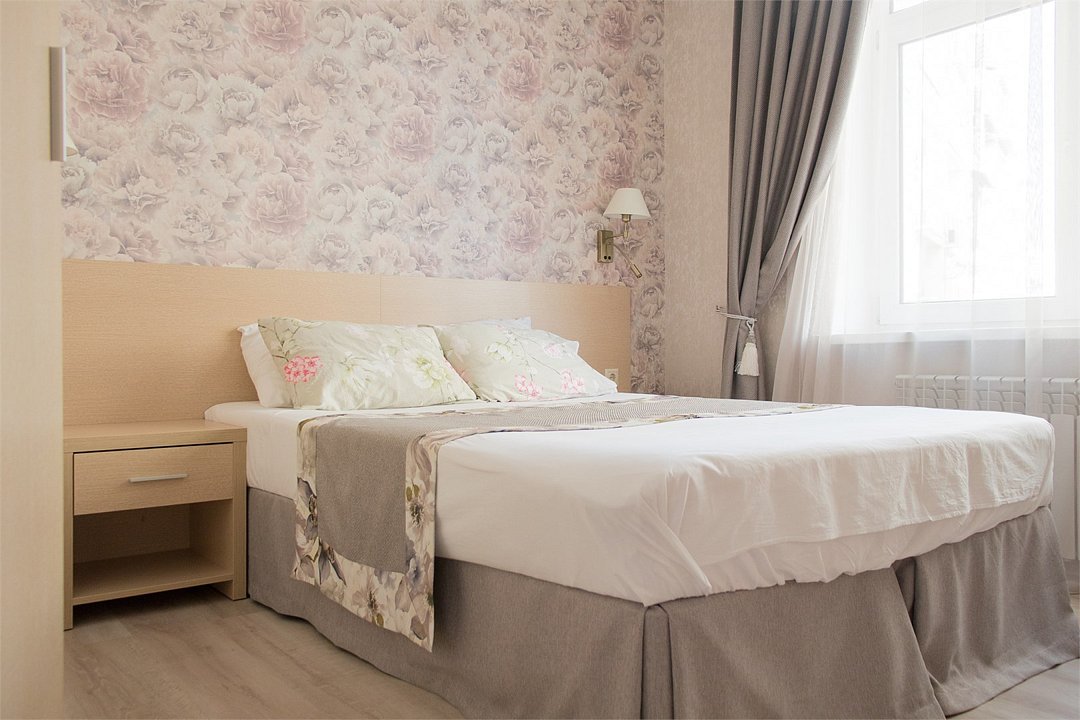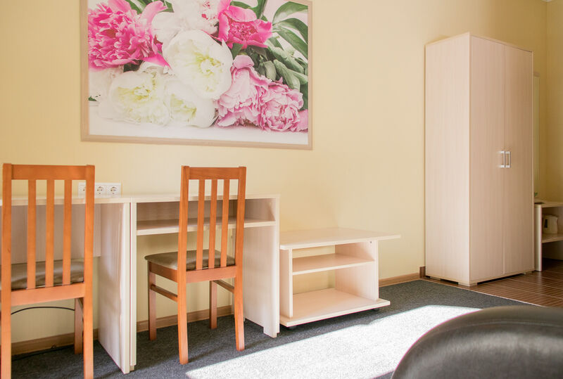 Два корпуса гостевого дома – один пятиэтажный, другой в четыре этажа, разместились на благоустроенной охраняемой территории с тихим внутренним двориком. Гостей ожидают номера разных категорий, в том числе апартаменты с кухней. Везде имеется собственная ванная комната, установлена сплит-система, есть телевизор и электрочайник. В ряде номеров встречаются балконы. Почти все окна выходят во внутренний двор, а значит, шум с улицы не помешает гостям.