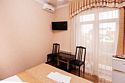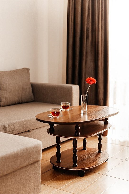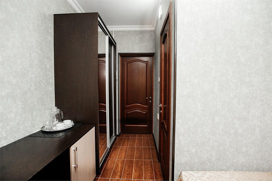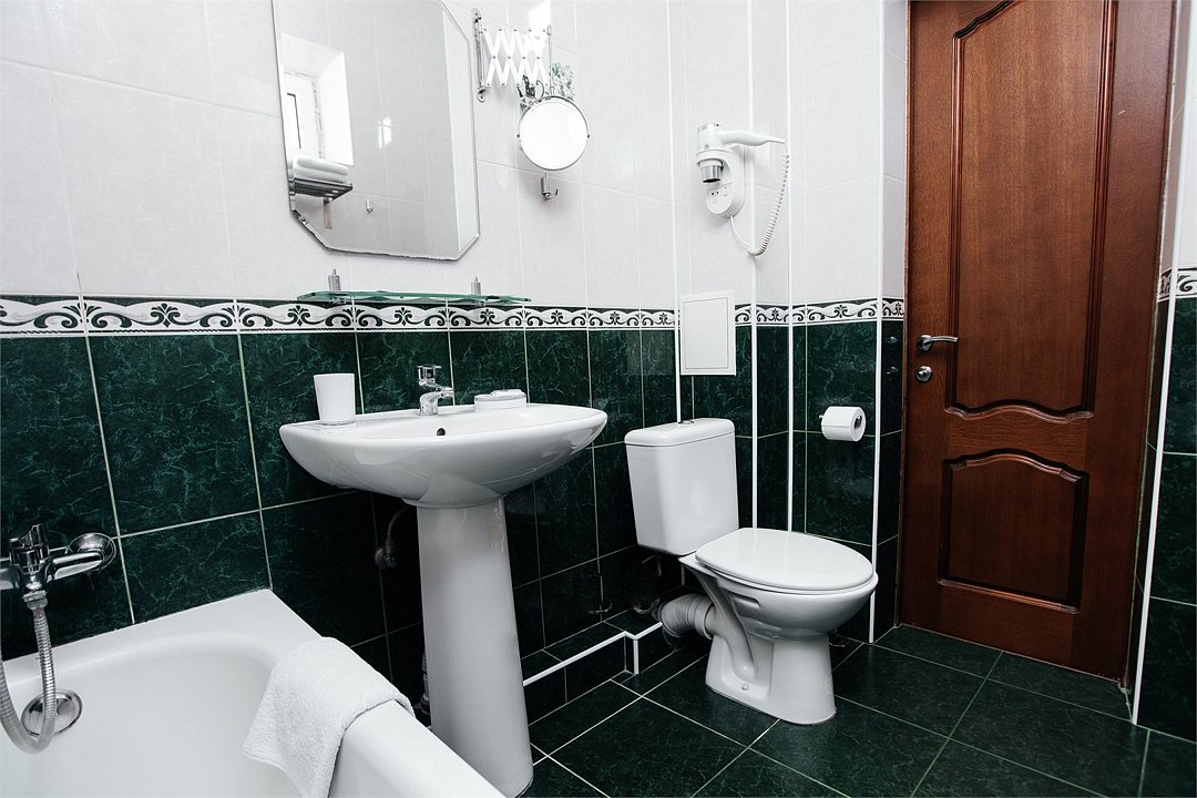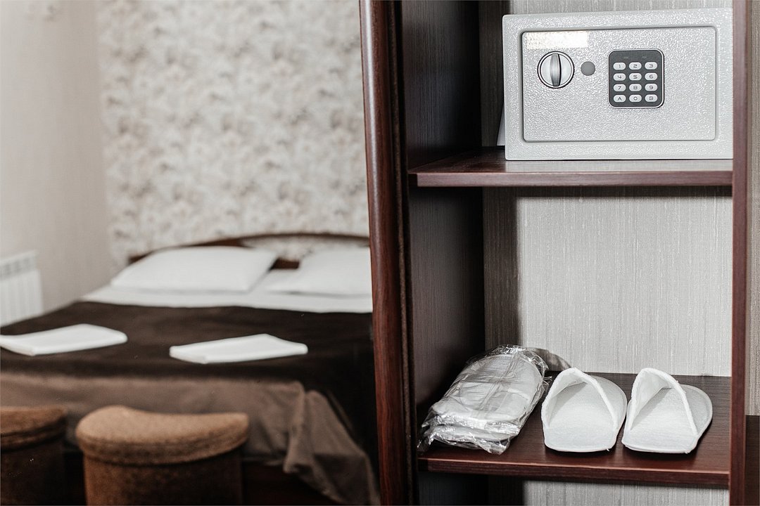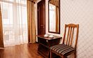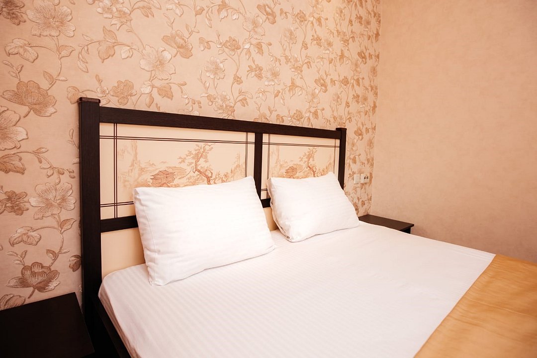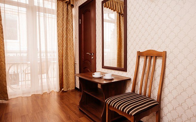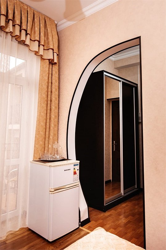 Уютный номер оснащён всем необходимым. Балкон, холодильник, телевизор, кондиционер, санузел, ванная, ванные принадлежности, телефон ,сейф , Wi-Fi, и многое другое. Комнаты оформлены в светлых тонах, близких к классическому стилю. Такой дизайн в интерьере позволяет оптимально подойти к благоустройству любого человека, так как цветовая гамма сдержана и не навязчива. По желанию клиента – ряд дополнительных услуг и возможностей: косметологический салон, массажный кабинет, кафе, бар, экскурсионное бюро, стирка, глажка, уборка и т.пУслуги и удобства
