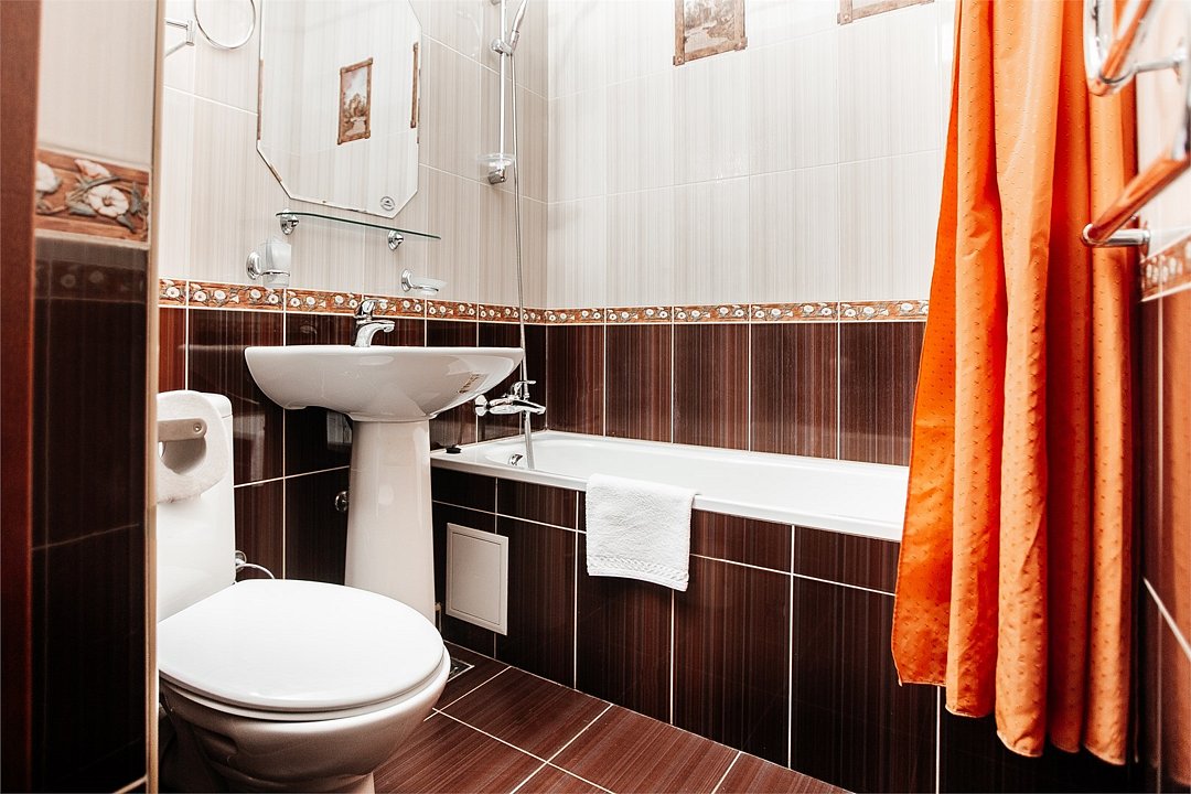 телевизор, Wi-Fi, холодильник, кондиционер, фен, утюг, ванная комната, ванна, банные полотенца, балкон, двуспальная кровать, шкаф для одежды, зеркало, мебельный гарнитур, унитаз, раковина, вид на город, кулер на этаже, вид во двор, стул, тумба, туалет, внутренний телефон, телевизор с плоским экраном, мини-холодильник, шкаф-купе, вешалки-плечики, мыло, можно с питомцамиВ гостиничном номере