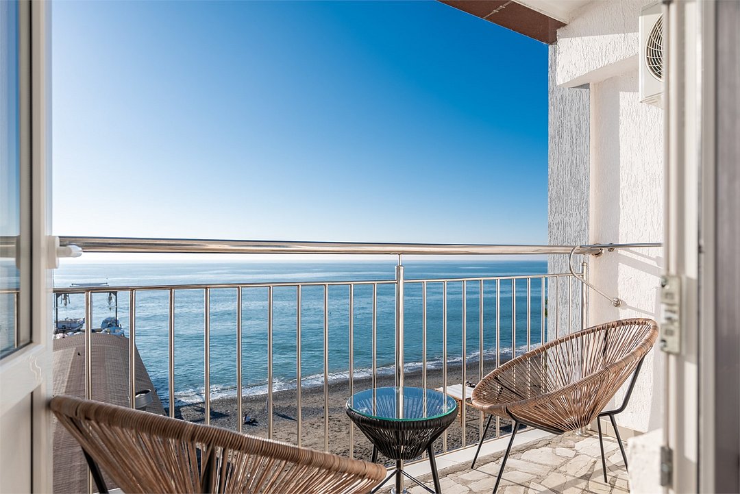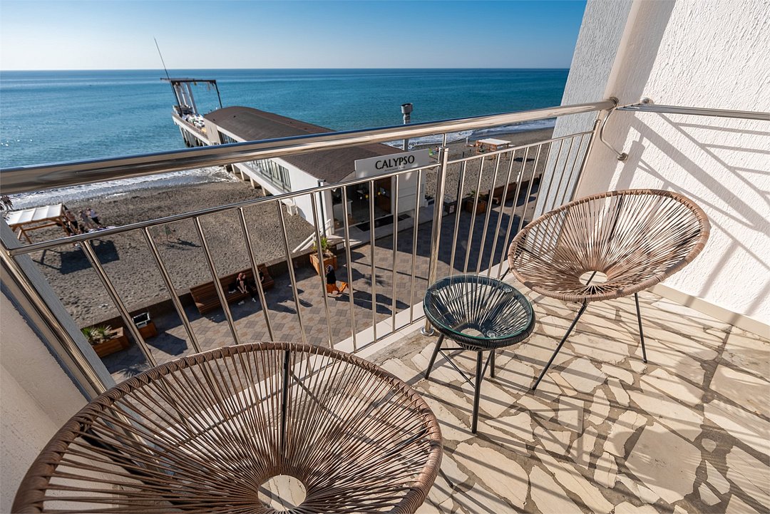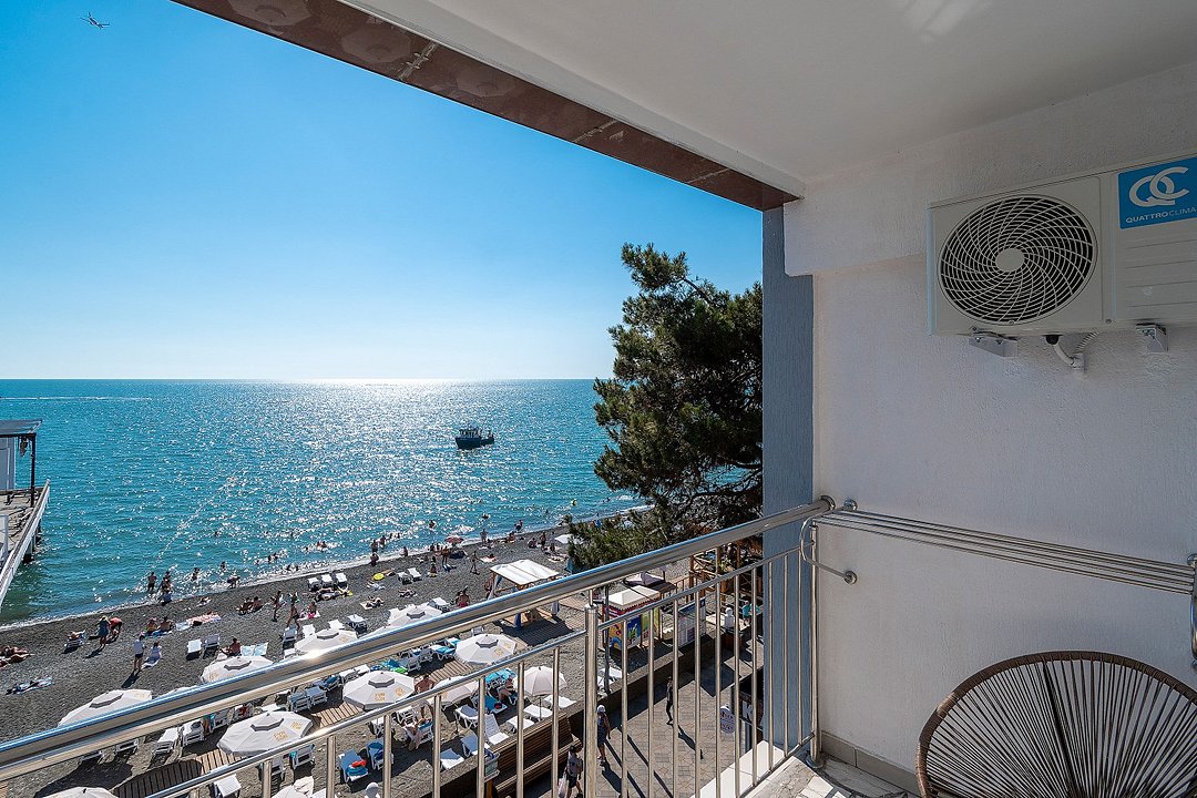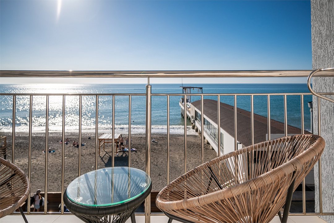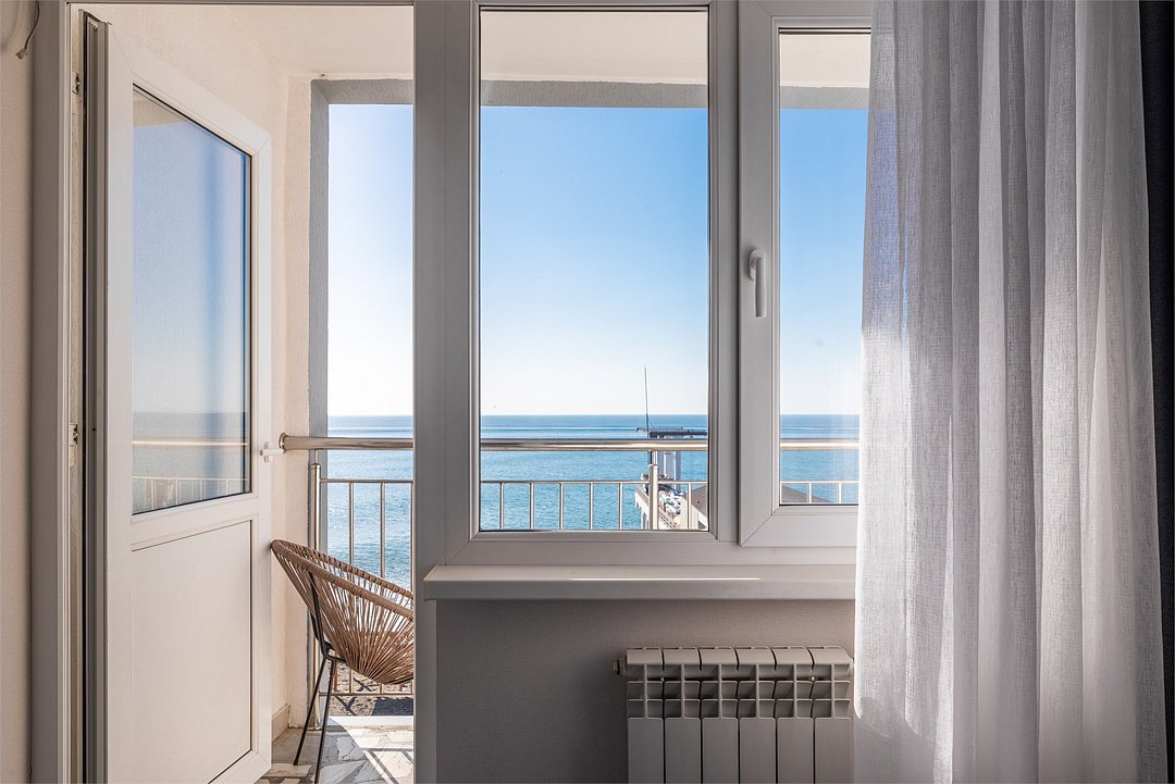 Наш отель включает в себя 18 номера категории «Стандарт c видом на море» Номер оборудован собственной душевой комнатой и туалетом, а так же балконом. Из окна номера открывается шикарный вид на море. Проживая в данной категории, вы получаете возможность засыпать и просыпаться под шум морского прибоя. Номер оформлен в современном стиле. Яркие и наоборот бежевые оттенки стен. Ванная комната оформлена в те же тона, что и комната. Номер оснащен электронным замком,кондиционером, осветительными приборами, холодильником, феном, телевизором, в номере есть доступ к сети wi-fi. Средства гигиены и ванные принадлежности пополняются ежедневно, уборка производится так же - ежедневно, смена полотенец- каждые 3 дня, смена постельного белья- каждые 3 дня. *P.S. SPA комплекс отеля (бассейн, финская сауна, хамам, тренажерный зал) не входит в стоимость проживания!Услуги и удобства
