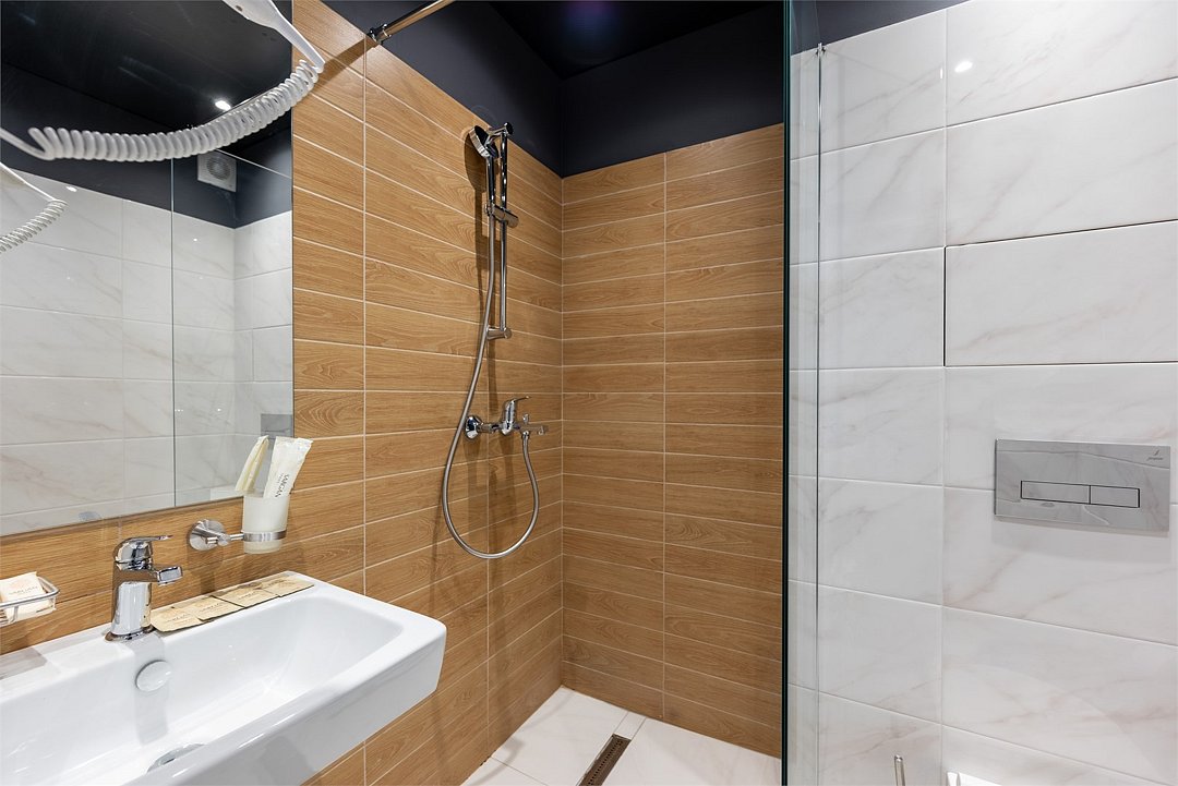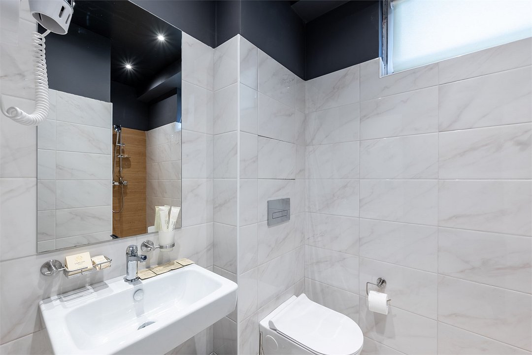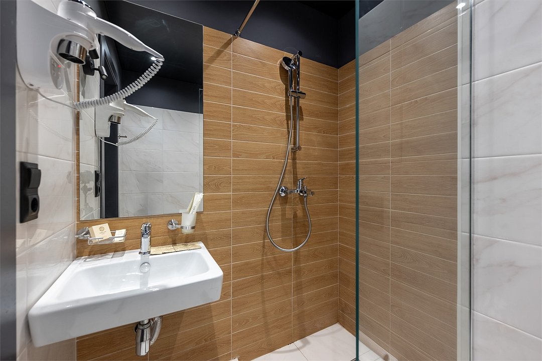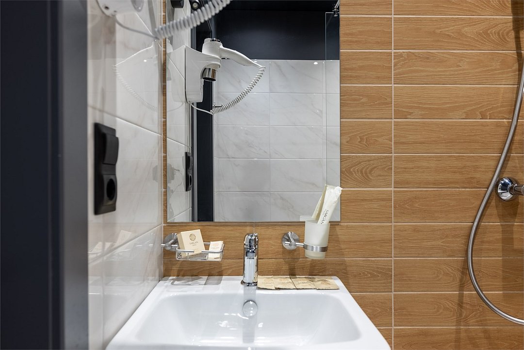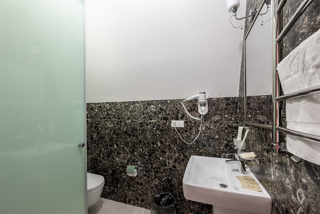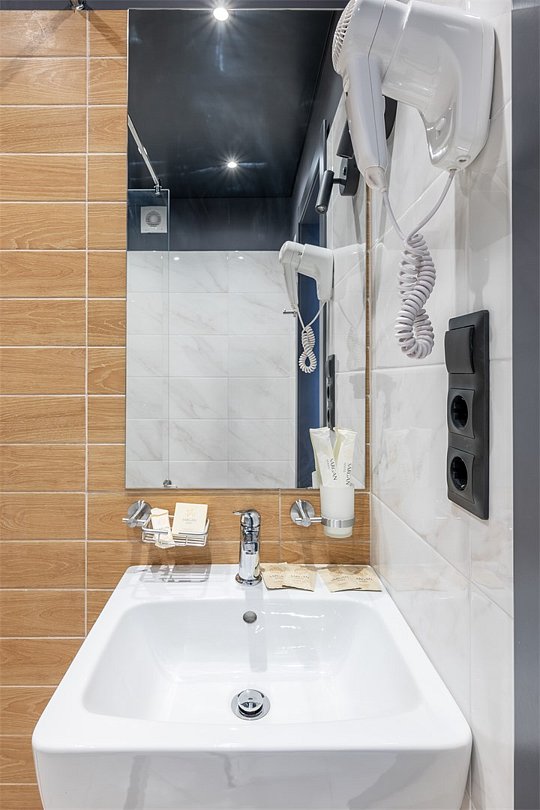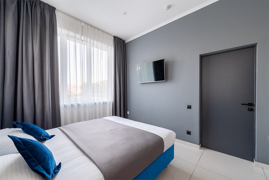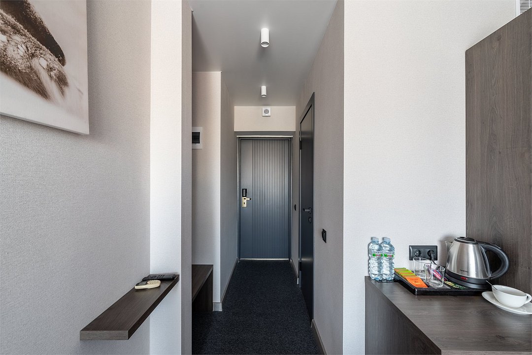 Однокомнатный номер с видом во двор или на соседние строения, двуспальная кровать 160х200 см Напольное покрытие - ковролин, балкон, ванная комната с душем В ванной комнате: Тапочки для взрослых Фен Туалетно-косметические принадлежности Оснащение: Индивидуальный кондиционер Телевизор Чайный набор (чайник, чайная посуда) Сейф Мини-бар Сушилка для одежды и полотенец Услуги: Wi-Fi Уборка номера (ежедневно) Смена постельного белья Смена полотенец Чай и кофе приветственная вода Утюг, гладильная доска (на этаже) *P.S SPA комплекс отеля (бассейн, финская сауна, хамам, тренажерный зал) не входит в стоимость проживания!Услуги и удобства
