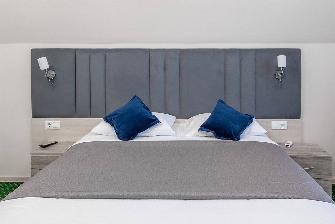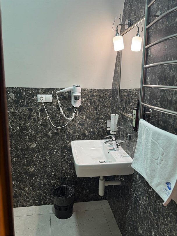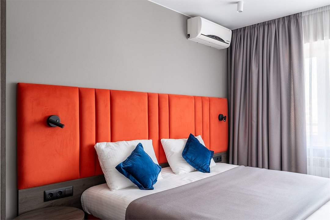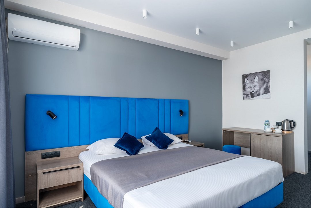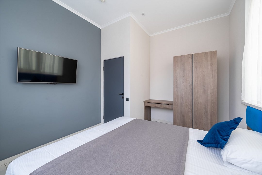 Наш отель включает в себя 7 номеров категории «Стандарт семейный» Номер оборудован собственной душевой комнатой и туалетом, а так же балконом. Из окна открывается вид на окрестности. Номер оформлен в современном стиле. Яркие и наоборот бежевые оттенки стен. Душевая комната оформлена в те же тона, что и комната. Номер оснащен электронным замком, кондиционером, осветительными приборами, холодильником, феном, телевизором, в номере есть доступ к сети wi-fi. Средства гигиены и ванные принадлежности пополняются ежедневно, уборка производится так же - ежедневно, смена полотенец- ежедневная, смена постельного белья - каждые 3 дня. *P.S. SPA комплекс отеля (бассейн, финская сауна, хамам, тренажерный зал) не входит в стоимость проживания!Услуги и удобства