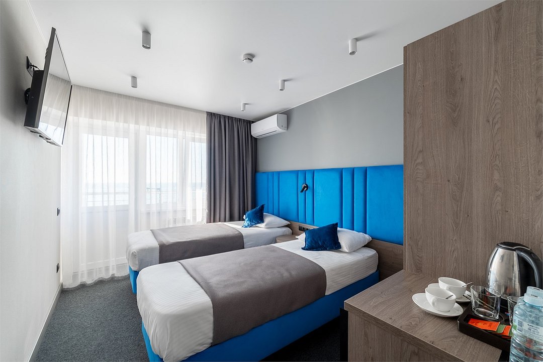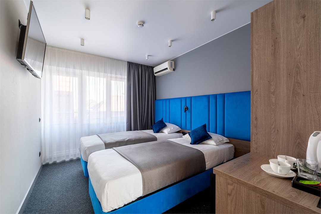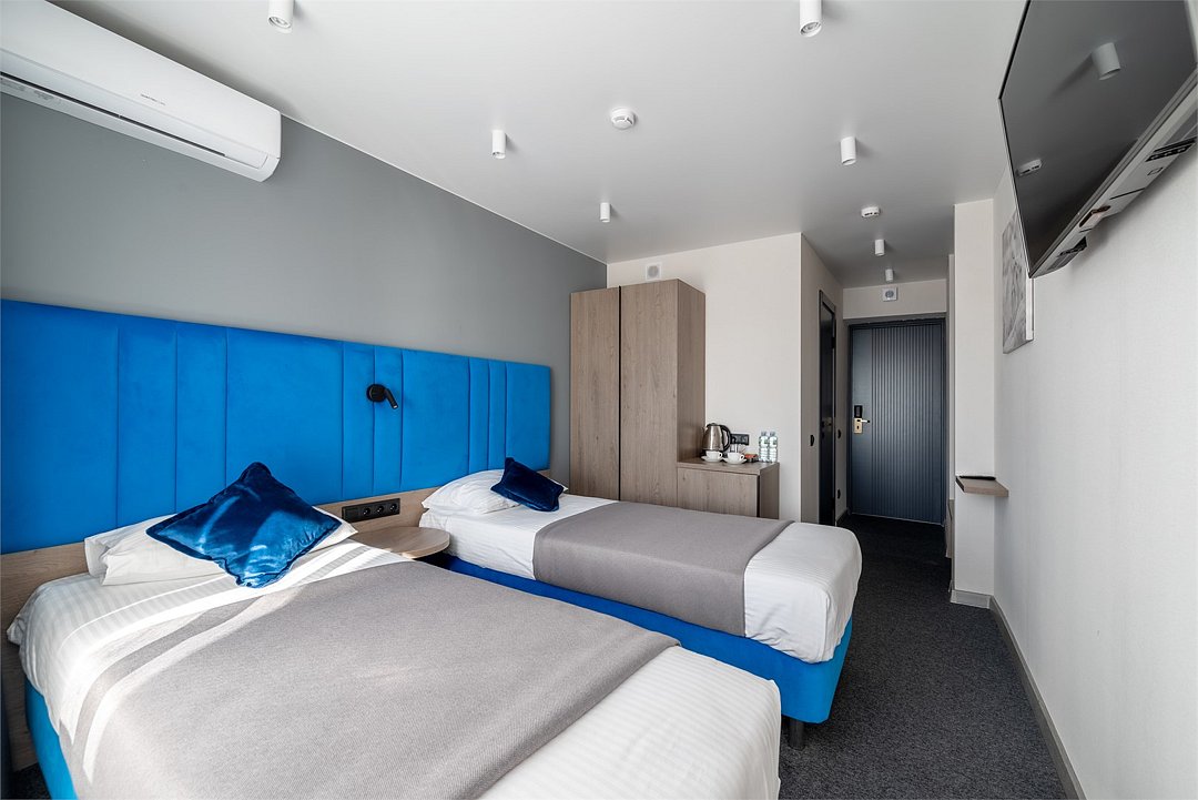 телевизор, кабельное телевидение, Wi-Fi, холодильник, кондиционер, система климат-контроля, светильник, фен, электронные замки, ванная комната, душевая кабина, банные принадлежности, банные полотенца, пляжные полотенца, тапочки, гигиенические средства, косметические средства, балкон, две односпальные кровати, шкаф для одежды, вешалки, багажная тумба, зеркало, мебельный гарнитур, звуконепроницаемые стены и окна, чайный набор, обслуживание номеров, сейф, чайник, унитаз, раковина, косметическое зеркало, питьевая вода, ковровое покрытие, отопление, душ, вид на город, кулер на этаже, вид во двор, стаканы, туалетные средства, туалет, сплит-система, цифровое тв, телевизор с плоским экраном, гостиничная парфюмерия, телевизор со Smart TV, электронный консьерж 24/7, чайная станция, уборка номера, набор для приготовления чая и кофе, вешалки-плечики, бутилированная вода, без питомцевВ гостиничном номере