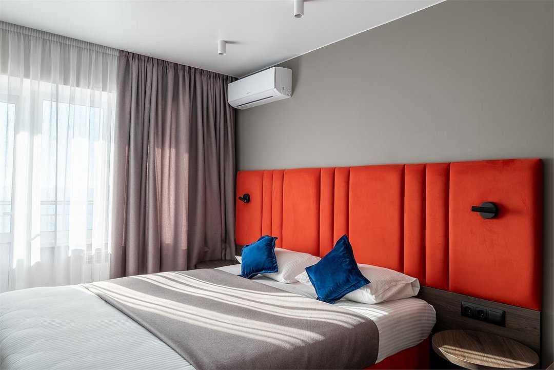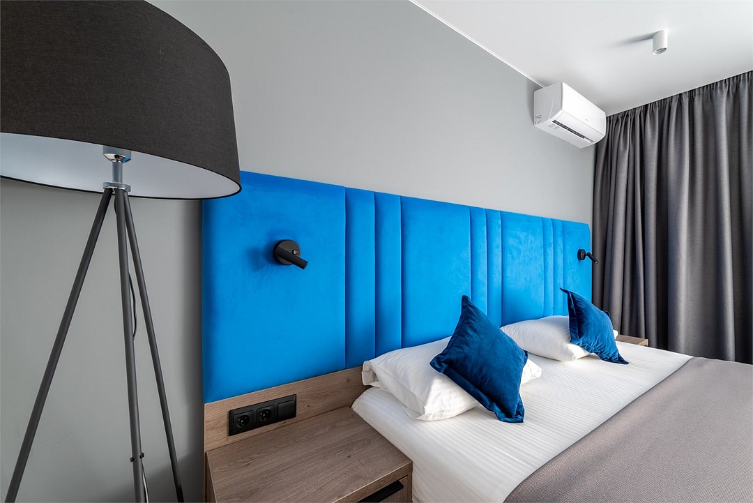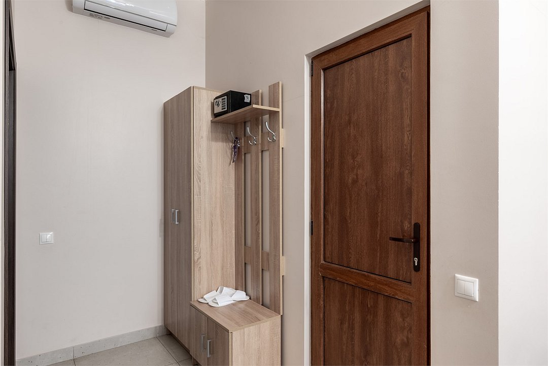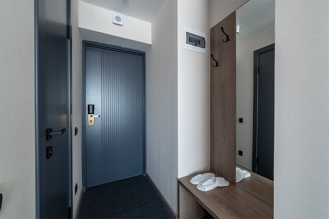 телевизор, Wi-Fi, интернет, холодильник, кондиционер, фен, электронные замки, душевая кабина, санузел, банные полотенца, пляжные полотенца, тапочки, гигиенические средства, косметические средства, балкон, двуспальная кровать, шкаф для одежды, вешалки, багажная тумба, зеркало, мебельный гарнитур, звуконепроницаемые стены и окна, обслуживание номеров, информационная карта, меню, сейф, унитаз, раковина, косметическое зеркало, питьевая вода, ковровое покрытие, отопление, душ, вид во двор, стаканы, туалетные средства, туалет, цифровое тв, раскладное кресло, мини-холодильник, гостиничная парфюмерия, телевизор со Smart TV, номер для некурящих, электронный консьерж 24/7, кресло-кровать, чайная станция, уборка номера, набор для приготовления чая и кофе, вешалки-плечики, бутилированная вода, без питомцевВ гостиничном номере
