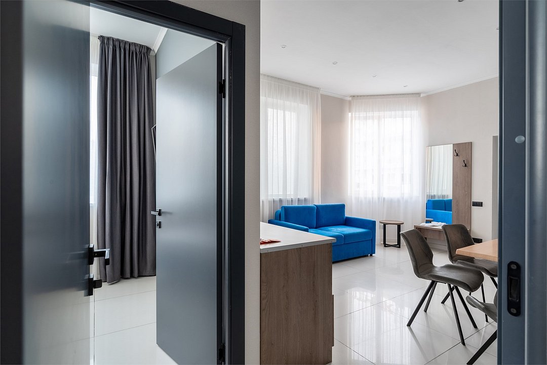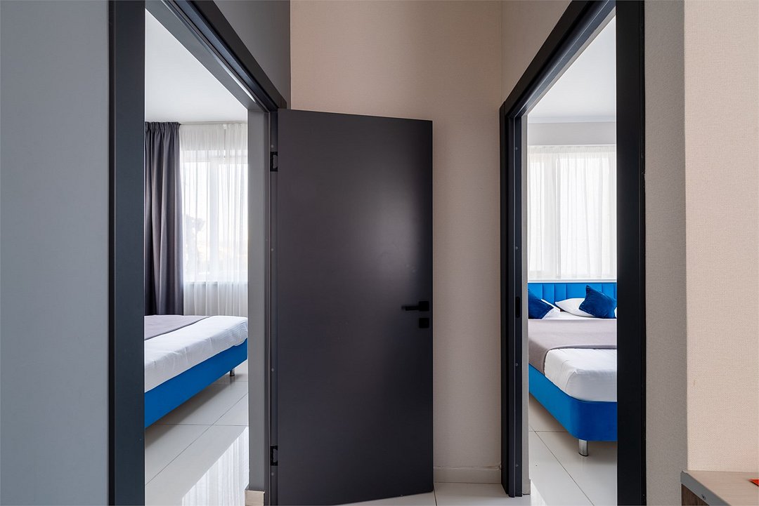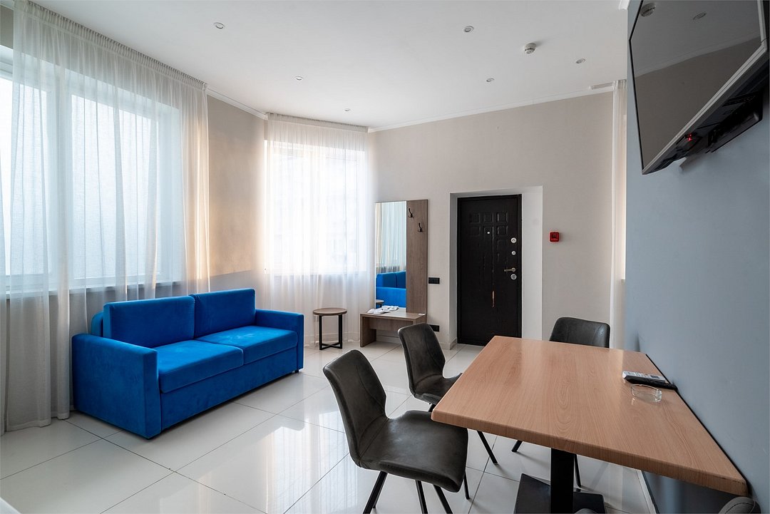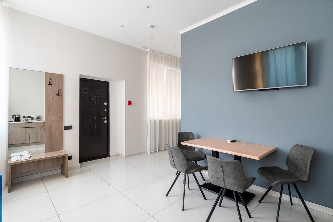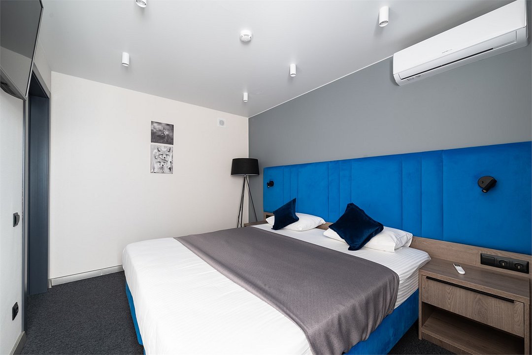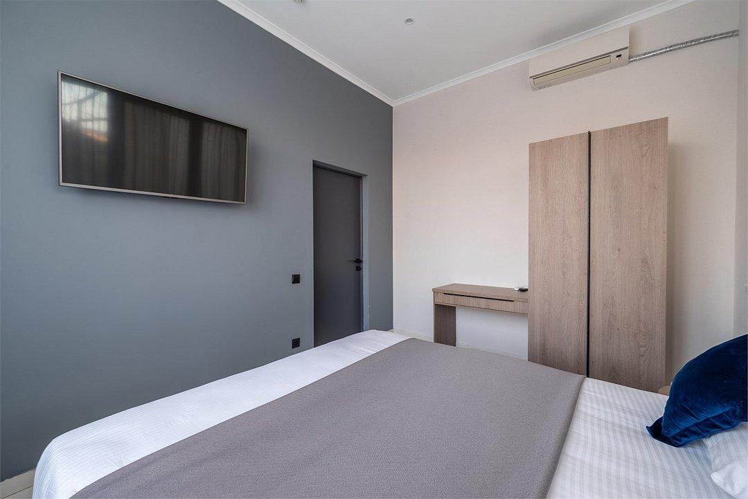 Просторные апартаменты из 3-х комнат для 4 гостей занимают 2-ой этаж отдельно стоящего здания. В номере 2 современные спальни с двуспальными кроватями, а также уютная гостиная с зоной кухни и обеденным столом, собственный Wi-Fi, холодильник, мультиварка, телевизор со спутниковыми каналами в каждой комнате, кондиционер, фен, санузел с современной душевой кабиной. *P.S. SPA комплекс отеля (бассейн, финская сауна, хамам, тренажерный зал) не входит в стоимость проживания!Услуги и удобства