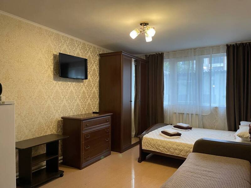 На территории дома есть зона отдыха, общая кухня и Wi-Fi. Номера оснащены балконами, ванными комнатами с душем, туалетами и феном, мебелью и бытовой техникой. В каждом номере есть телевизор, холодильник, кондиционер, электрочайник и чайный сервиз.