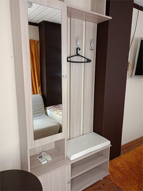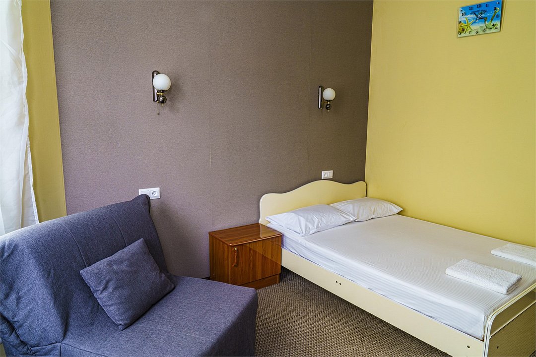 Wi-Fi, кондиционер, настольные лампы, фен, обогреватель, санузел, банные полотенца, пляжные полотенца, односпальная кровать, тумбы, шкаф для одежды, вешалки, письменный стол, зеркало, комод, обслуживание номеров, отдельный вход в номер, душ, вид во двор, меню подушек, тумба, туалетные средства, туалет, диван-кровать, раскладное кресло, телевизор с плоским экраном, мини-холодильник, номер для некурящих, уборка номера, вешалки-плечики, частный двор, мыло, затемняющая штораВ гостиничном номере