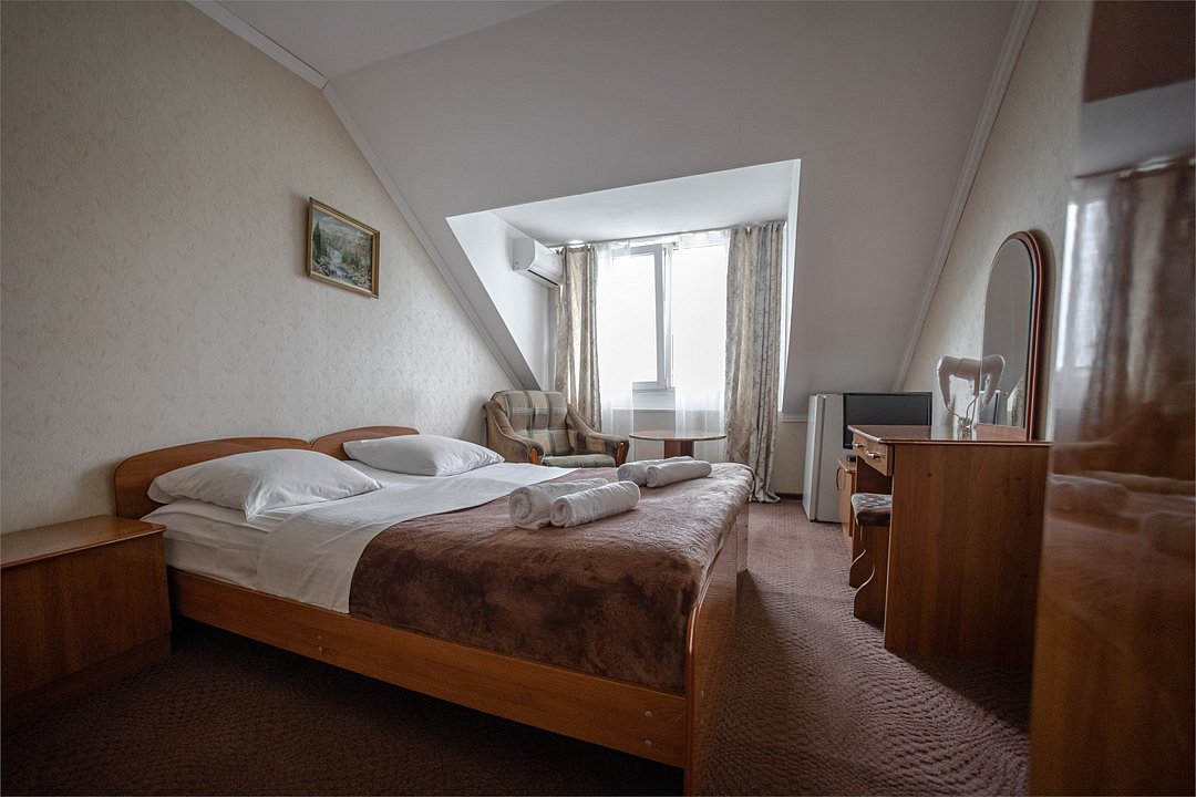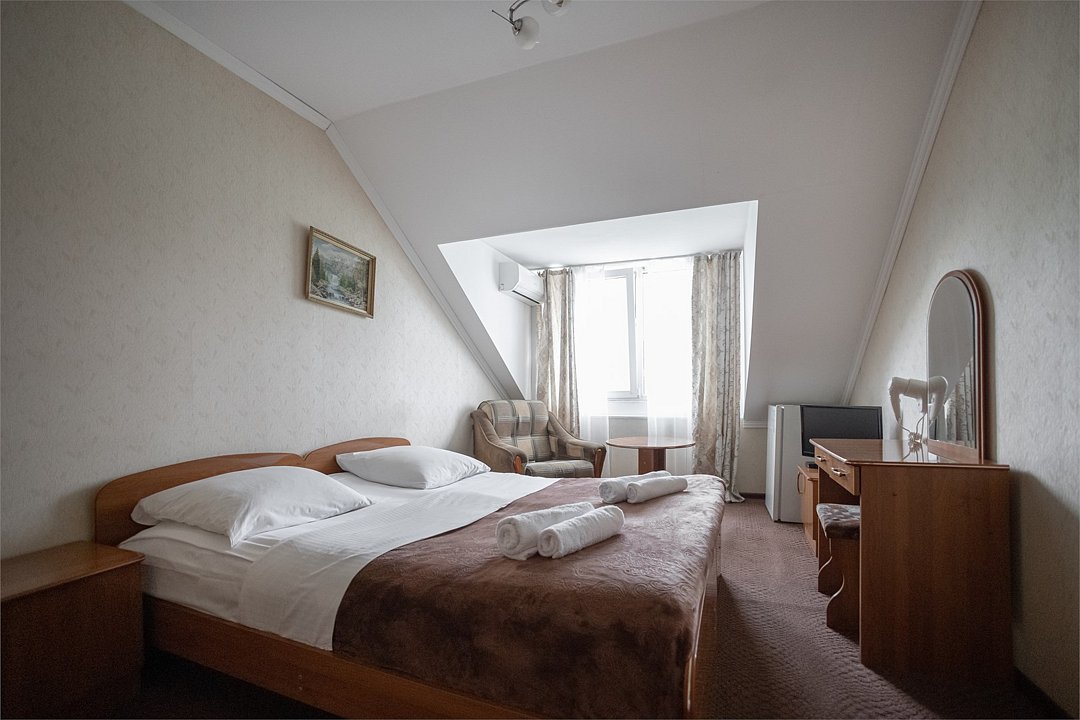 Выгодный тариф - минимальным тарифом проживания можно воспользоваться при бронировании номеров «Стандарт» и «Комфорт». Для комфортного проживания номера оснащены одной двуспальной или двумя раздельными кроватями, цифровым TV, бесплатным выходом в Интернет (Wi-Fi), кондиционером, санузлом с ванной, феном, предметами гостеприимства.