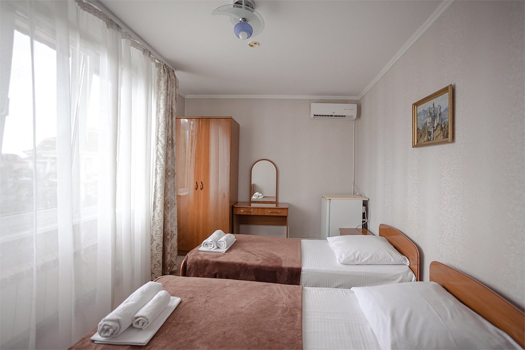 Wi-Fi, интернет, система климат-контроля, фен, ванная комната, ванна, банные полотенца, гигиенические средства, косметические средства, двуспальная кровать, две односпальные кровати, две односпальные или большая двуспальная кровать, гладильная доска, шкаф для одежды, письменный стол, зеркало, вид во двор, стаканы, туалетный столик, кофейный столик, стул, тумба, туалетный столик, туалетные средства, сплит-система, цифровое тв, раскладное кресло, телевизор с плоским экраном, мини-холодильник, гостиничная парфюмерия, номер для некурящих, кресло-кровать, уборка номера, прачечная (за дополнительную плату)В гостиничном номере