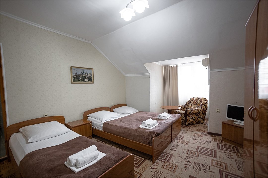 В числе удобств всех номеров шкаф, телевизор и собственная ванная комната.