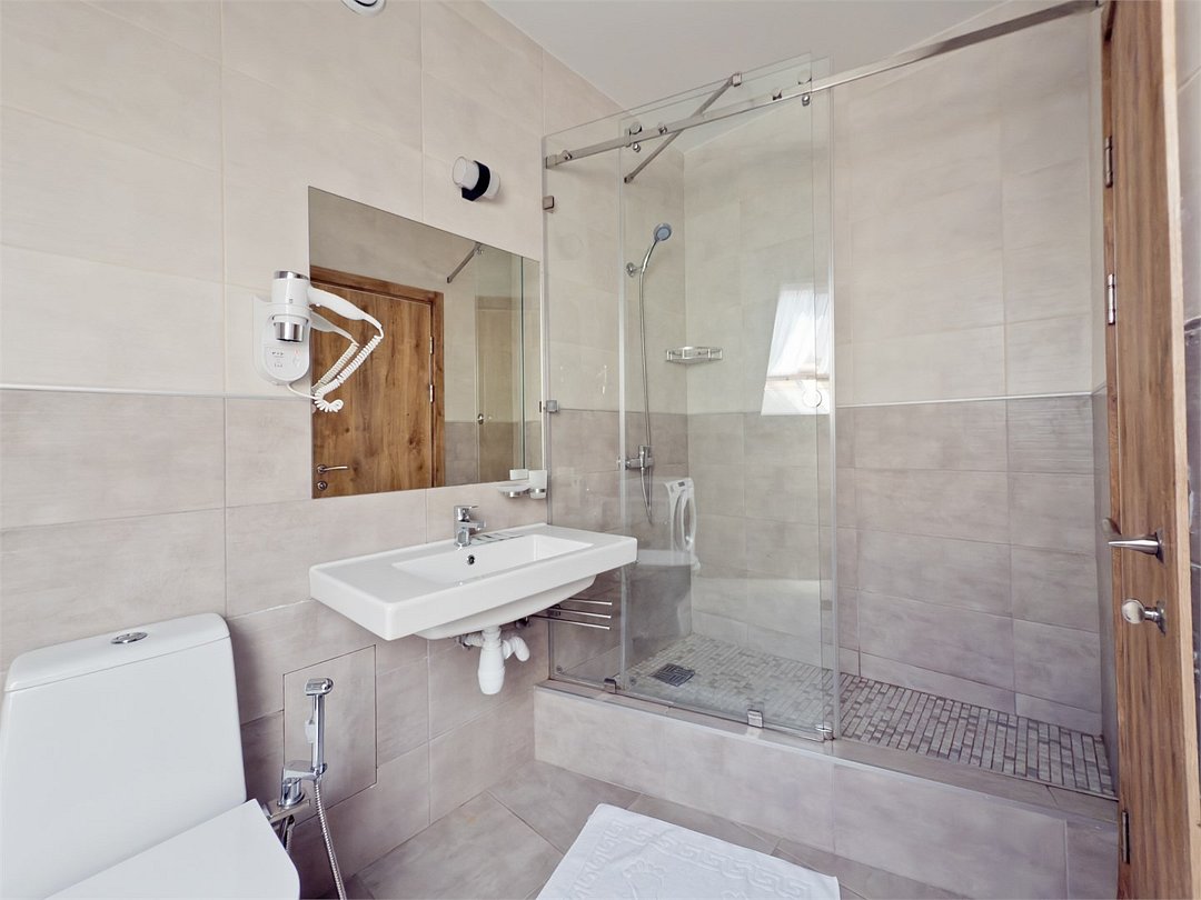 кабельное телевидение, Wi-Fi, интернет, кондиционер, система климат-контроля, светильник, фен, электронные замки, микроволновая печь, душевая кабина, банные полотенца, тапочки, двуспальная кровать, односпальная кровать, две односпальные кровати, две односпальные или большая двуспальная кровать, гладильная доска, кресла, стулья, шкаф для одежды, вешалки, журнальный столик, багажная тумба, зеркало, комод, мини-бар, чайный набор, набор посуды, информационная карта, меню, сейф, чайник, раковина, косметическое зеркало, отопление, душ, плиточное покрытие, стаканы, столовые приборы, тумба, туалетные средства, туалет, внутренний телефон, телевизор с плоским экраном, мини-холодильник, мансардные окна, теплые полы, рабочий стол, кресло-кровать, фумигатор, набор для приготовления чая и кофе, услуги прачечной (платно), СПА, собственный бассейн с подогревом, мыло, торговый автомат (за дополнительную плату), комната для переговоров (за дополнительную плату), баняВ номере