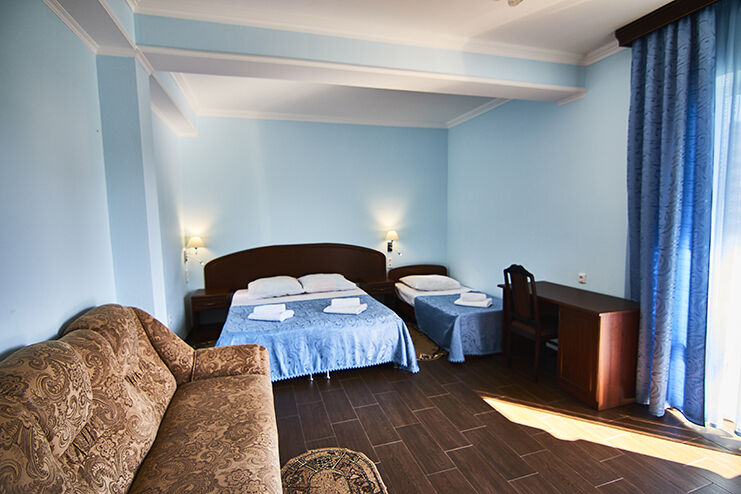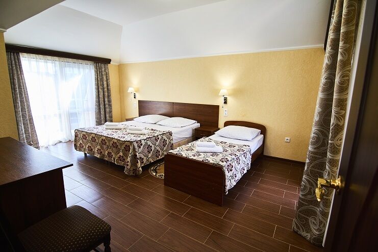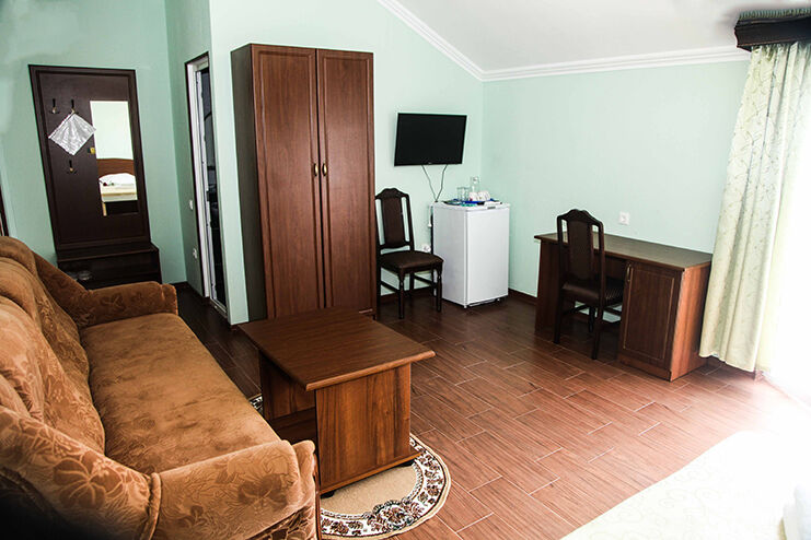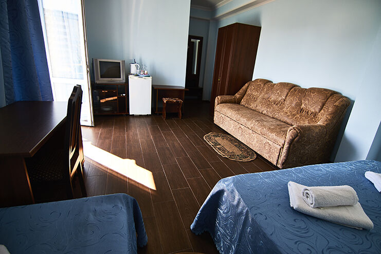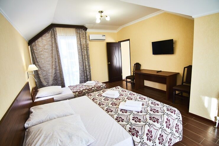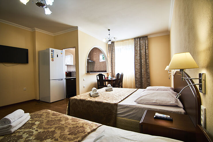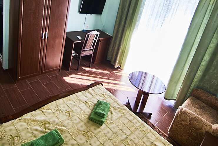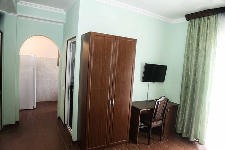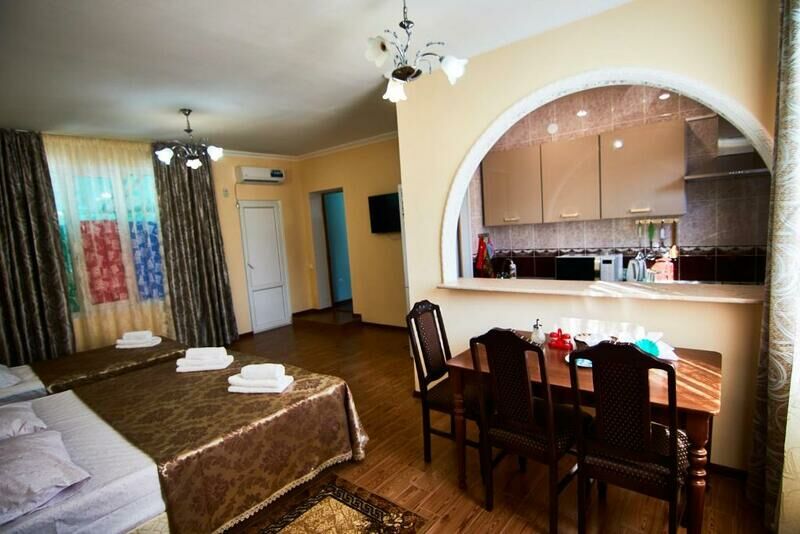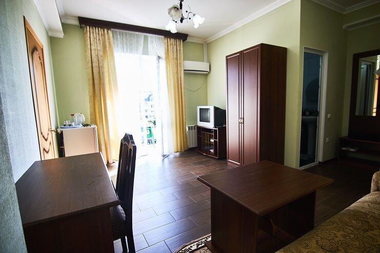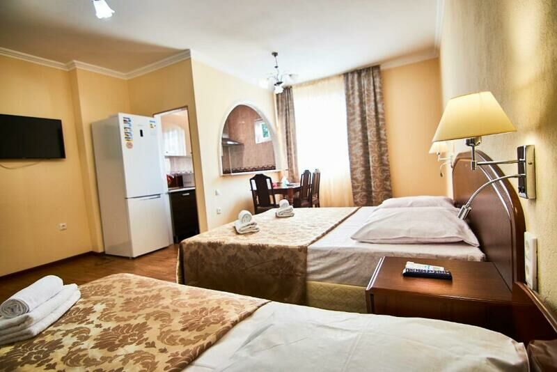 Путешествие с семьейСимпатичненько! Уютно и по-семейному!Отдыхали с 4-11 августа. Понравилось. Спокойно, уютно, гостеприимно. Комнаты небольшие, но есть все. Холодильник, телевизор, кондиционер, санузел в номере, вайфай. Уборка комнат раз в 3 дня. Чайник на этаже. На первом этаже отдельное помещение для приготовления пищи. Имеется своя собственная столовая, с очень вкусной и свежей едой. Приветливое обслуживание на ресепшн. Расположено недалеко от моря, пешком минут 10, рядом с отелем ряд столовых, кафе, "Пятерочка", аптека. Одним словом, рекомендую!