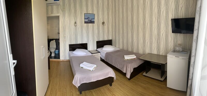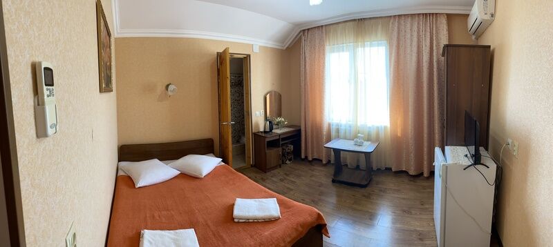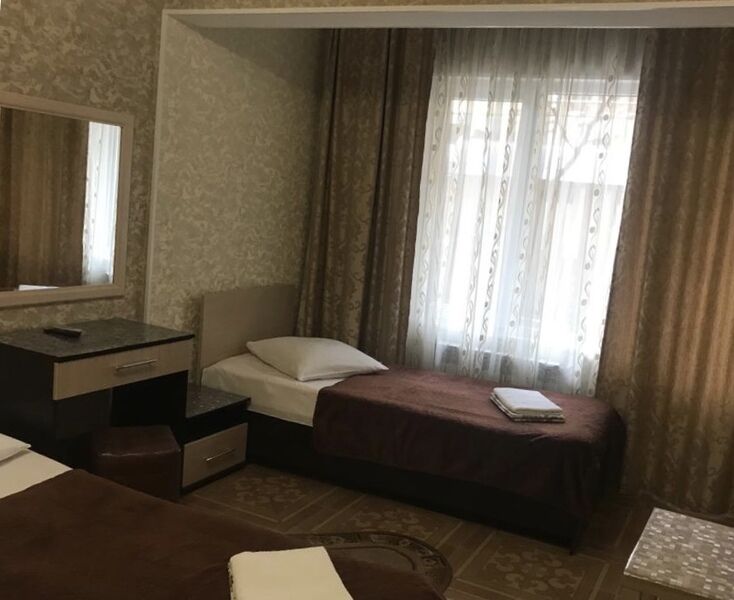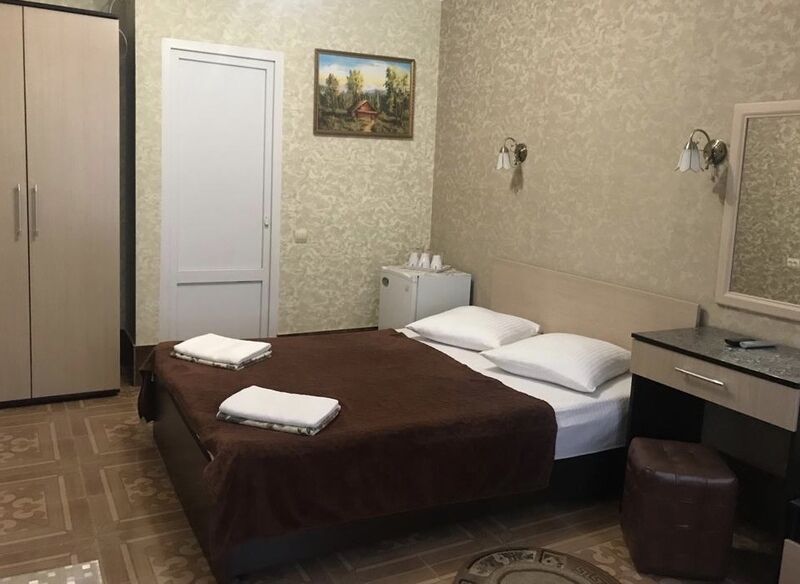 Трехэтажный корпус отеля занимает небольшую закрытую территорию с уютным внутренним двориком, в котором высажены зеленые насаждения и установлены небольшие фонтанчики. Гости могут разместиться в двухместных номерах Стандарт. В каждой комнате есть кондиционер, телевизор, мини-холодильник, а также собственный санузел с душем.