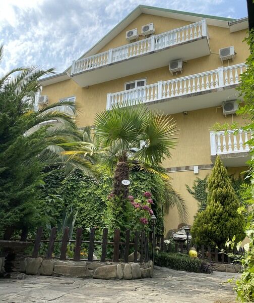 Самолетом до аэропорта Адлер, далее на автобусе №105, 105с, 105э до остановки «Пансионат Знание». Затем пешком до отеля 650 м (~ 8 минут).