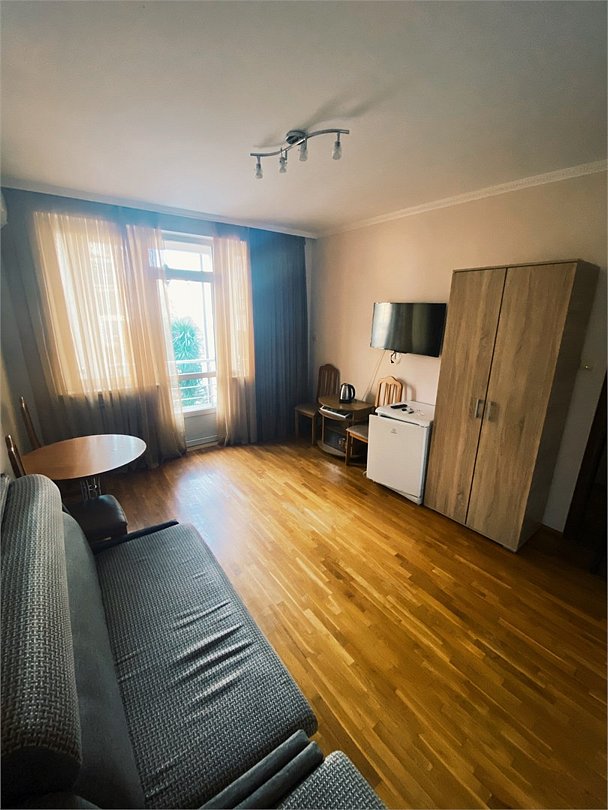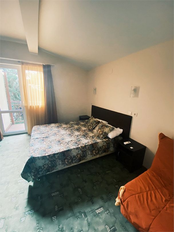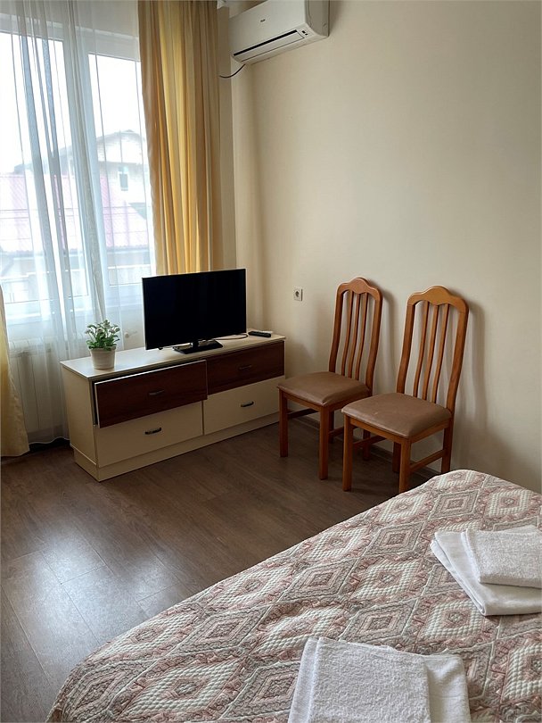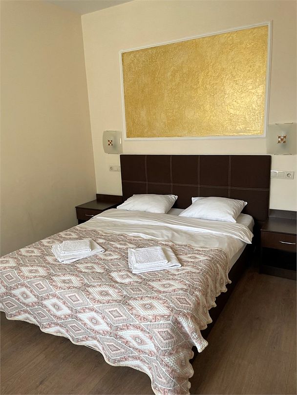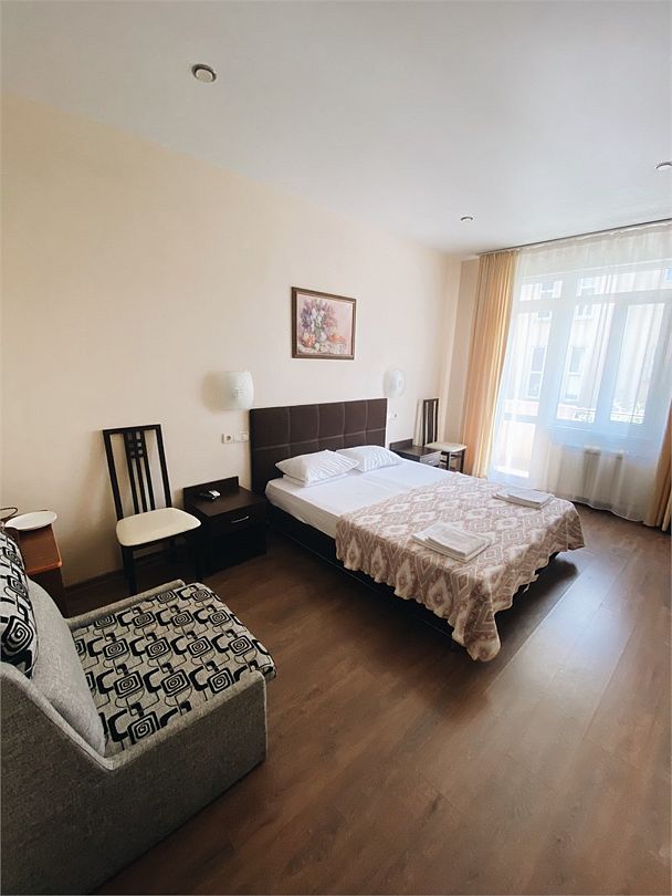 В номере двух спальная кровать и дополнительное место тахта. В номере имеется холодильник, набор посуды, телевизор ,кондиционер, балкон, туалетные принадлежности. Все удобства в номере.Услуги и удобства