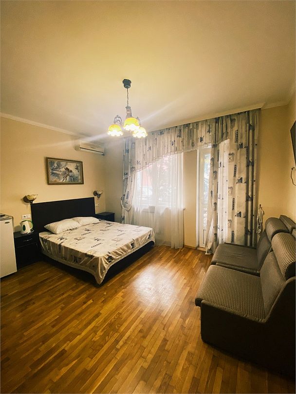 В номере двух спальная кровать и дополнительное место диван двухспальный. Отдельный вход -1 этаж. Собственная кухня. В номере имеется холодильник, чайник, набор посуды, кондиционер, телевизор, туалетные принадлежности. Все удобства в номере.Услуги и удобства