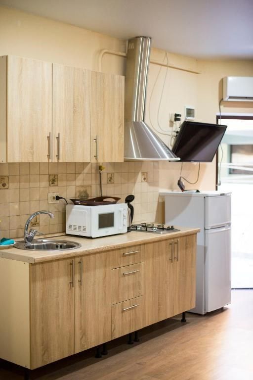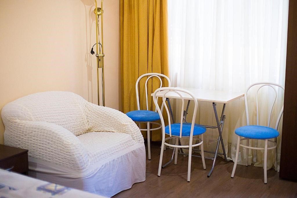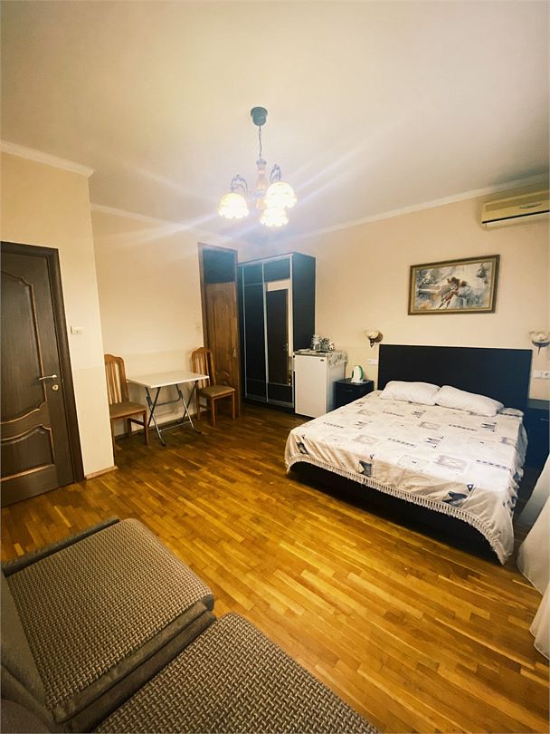 В номере двух спальная кровать и дополнительное место тахта. Отдельный вход -1 этаж. Собственная кухня. В номере имеется холодильник, чайник, набор посуды, кондиционер, телевизор,туалетные принадлежности. Все удобства в номере.Услуги и удобства
