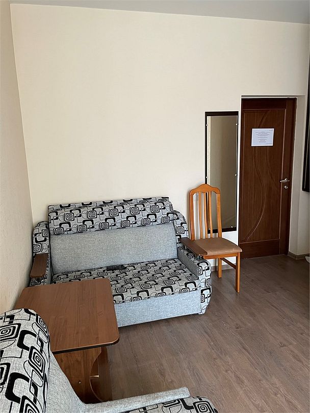 В номере двух спальная кровать ( или 2 односпальные) и дополнительное место тахта. В номере имеется холодильник, набор посуды, кондиционер, телевизор, балкон, туалетные принадлежности. Все удобства в номере. Общая кухня на этаже.Услуги и удобства