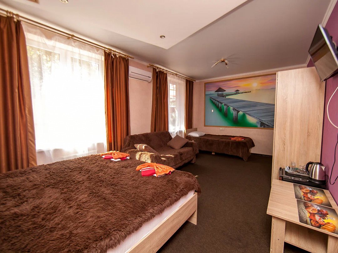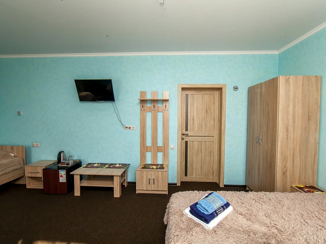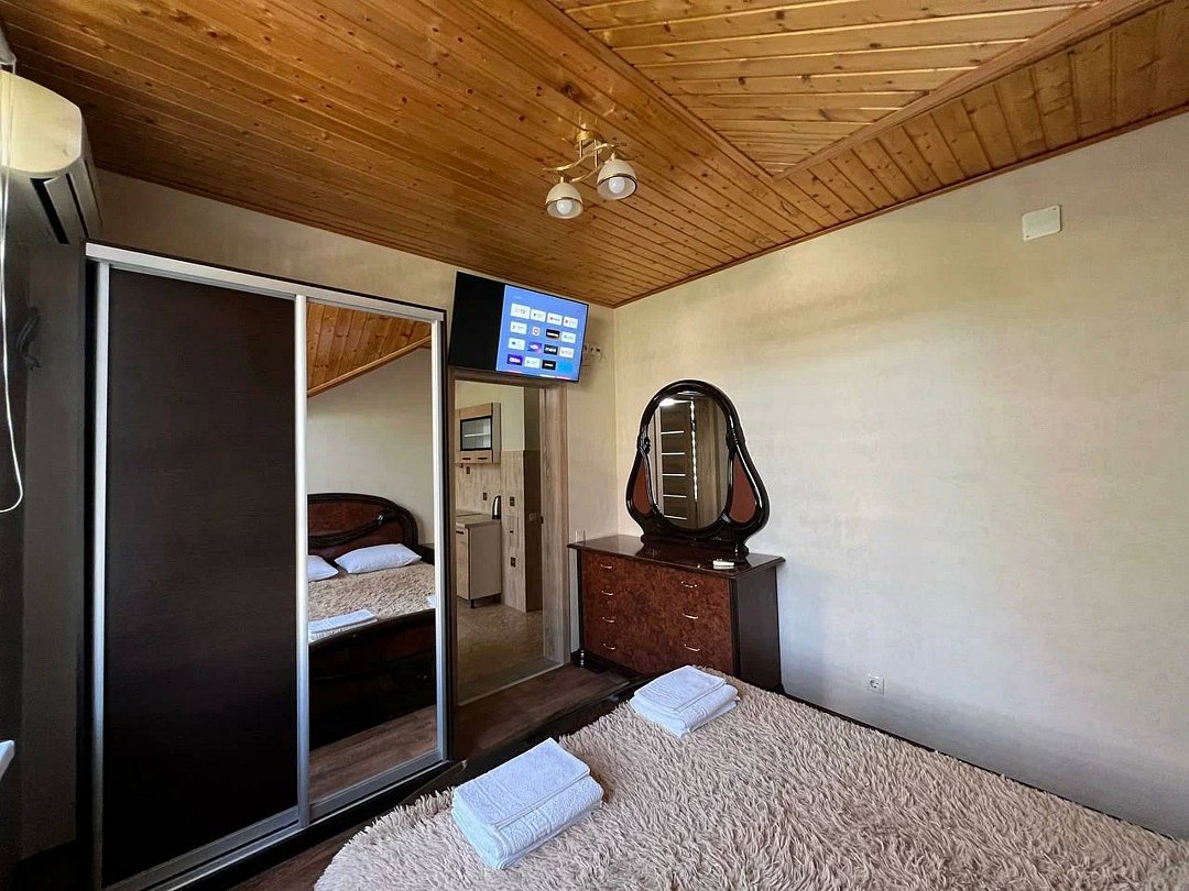 все удобства в номере , есть телевизор,посуда для кухни,телевизор,настольные игры,на территории мангал,детская площадка для детей.В номере