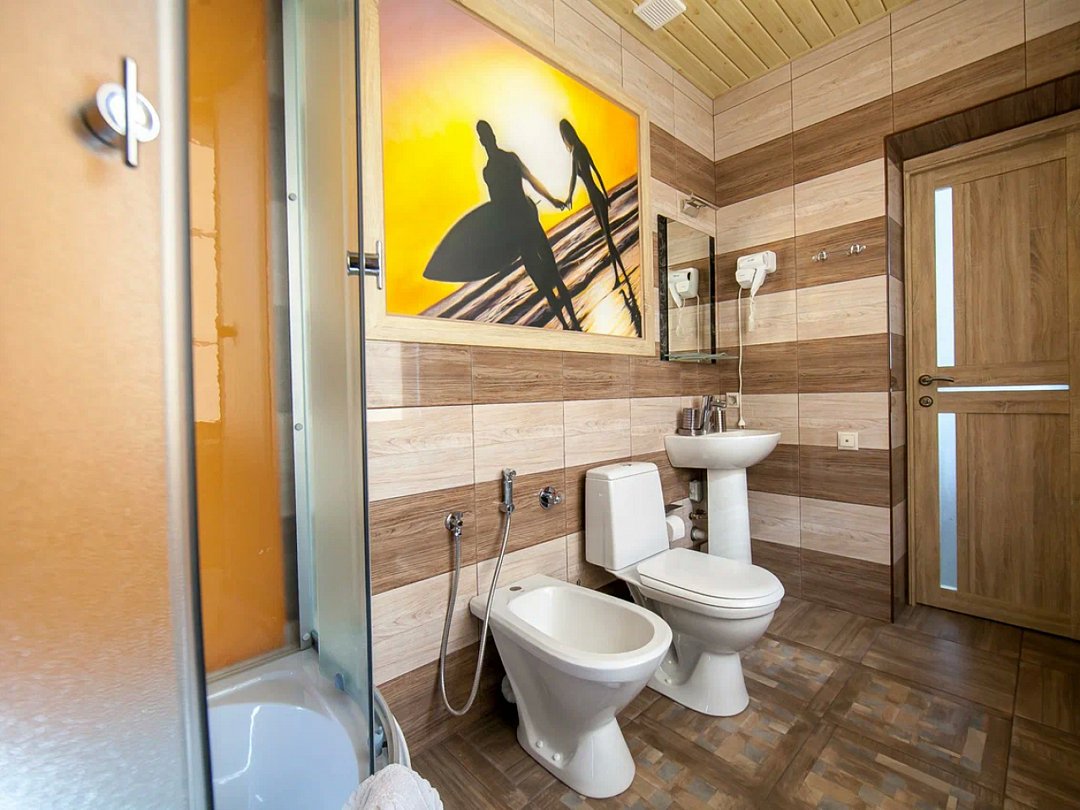 Гостевой дом "Счастливый Слон" в Адлере — уютные номера с дизайнерским ремонтом, детская зона, беседка, парковка, столовая рядом. До моря 10-15 минут пешком, рядом океанариум, дельфинарий, кафе и развлечения. Удобное расположение: к аэропорту, магазинам и рынкам. Тихий район, окружённый зеленью, идеально подходит для отдыха.