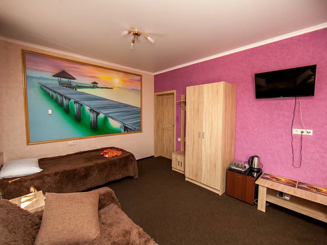 все удобства в номере , есть телевизор,кухня,посуда для кухни,телевизор,настольные игры,на территории мангал,детская площадка для детей.В номере
