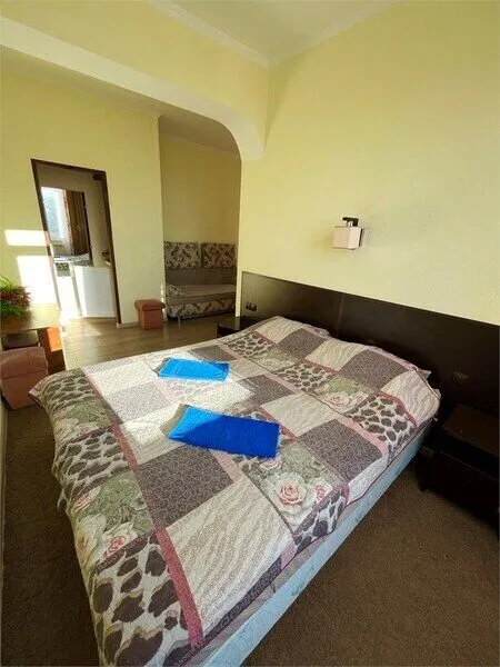 двуспальная кровать, раскладной диван, с/у, душ, ТВ.