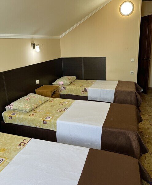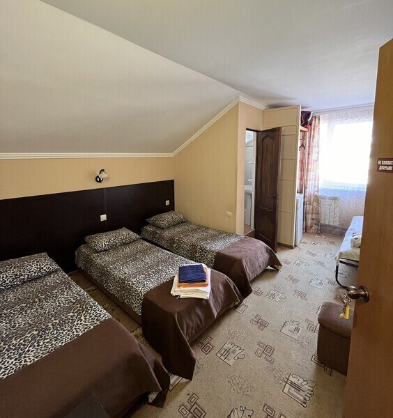 3 односпальные кровати, раскладной диван, с/у, душ, ТВ.
