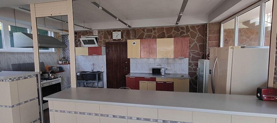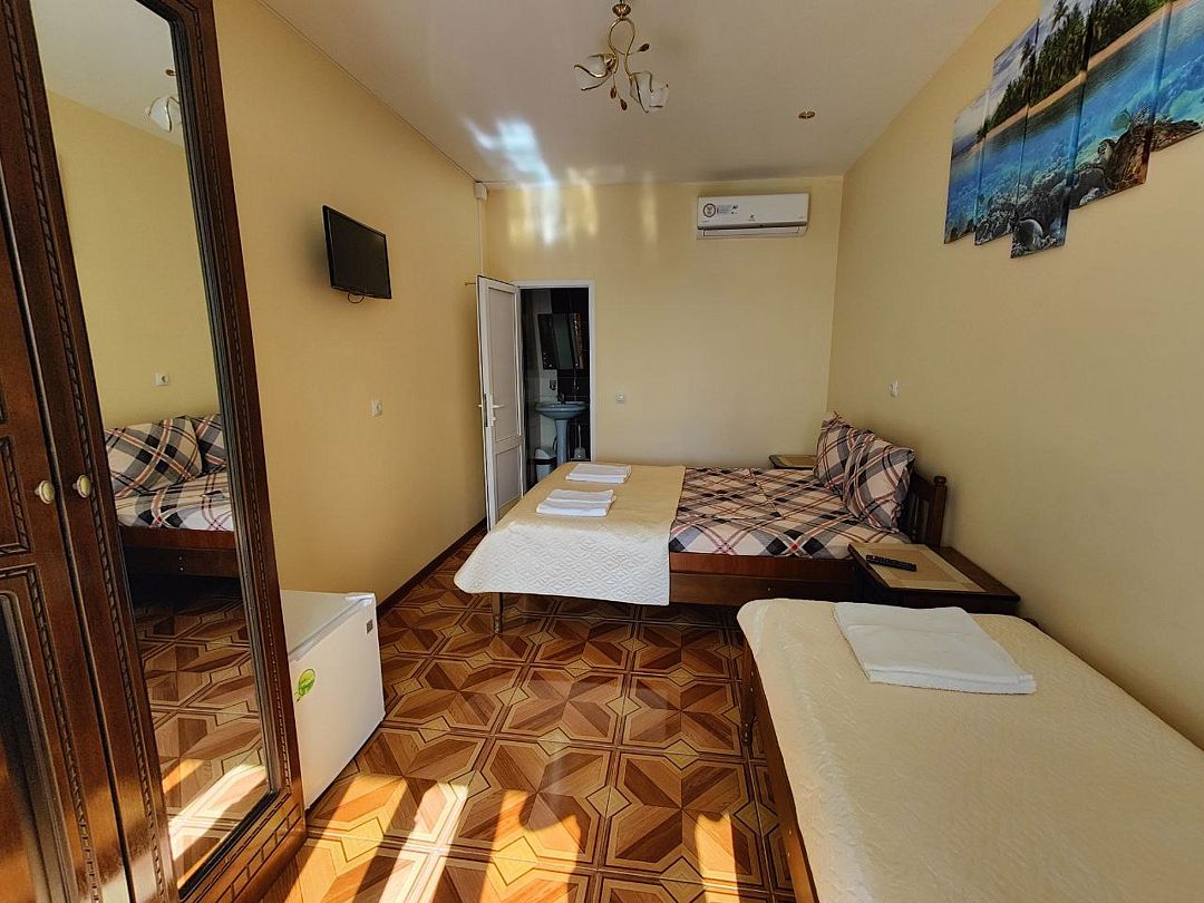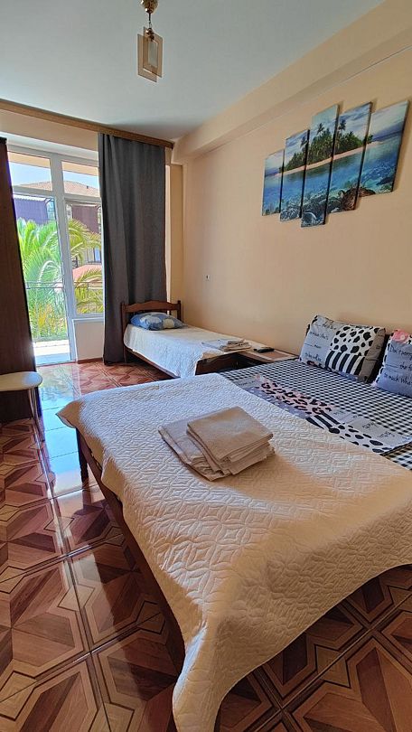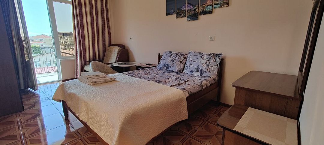 Путешествие с паройИюньЗамечательный гостевой дом. Комнаты уютные, в каждой есть душ. Кровати мягкие и удобные. Находится дом на возвышенности и вечером открывается невероятный вид на море. Есть бассейн, который строго по расписанию обеззараживают. Также есть небольшой сад, в котором можно прогуляться, увидеть как цветёт хурма и растут абрикосы. Кухня очень просторная, на всех хватает. Также есть мангальное место. На территории чисто. Есть Wi-Fi. Очень понравилось, рекомендую!