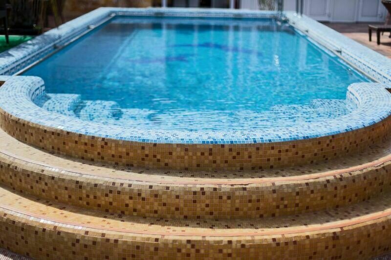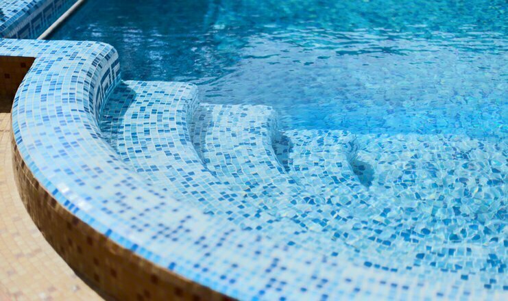 Инфраструктура: бассейн, зона отдыха, душРасположен на крыше отеля с подогреваемым бассейном.
