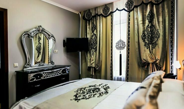 Современное четырехэтажное здание отеля возвышается на закрытой территории в 400 метрах от морского побережья. В распоряжении отдыхающих двухместные комфортабельные номера, выдержанные в традиционном классическом стиле. Везде имеются ЖК-телевизор, электрочайник, холодильник, кондиционер. В ванных комнатах предусмотрены мягкие халаты, тапочки, есть фен.
