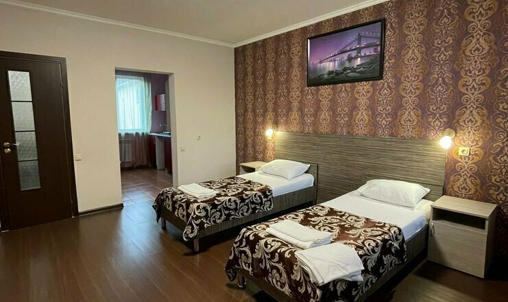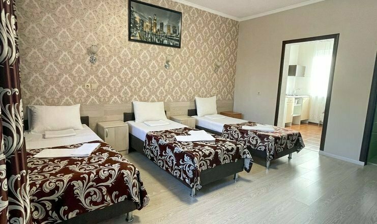 Для проживания предоставляются уютные и светлые номера с современным ремонтом. В каждой комнате есть удобная кровать, вместительный шкаф, кондиционер. В собственной ванной комнате можно воспользоваться гигиеническими принадлежностями.