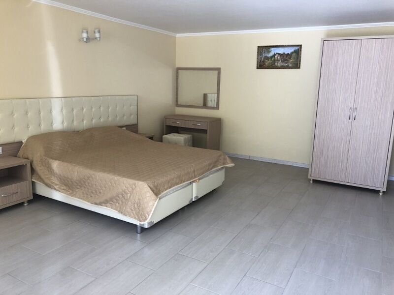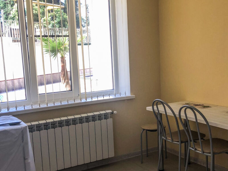 Четырехэтажный корпус (без лифта) разместился на небольшом озелененном участке в тихом районе города. Гостей ожидают одно-, двух- и трехкомнатные номера Стандарт, некоторые из которых оснащены кухней. В каждом номере есть душ, кондиционер и необходимая бытовая техника — телевизор, фен, электрочайник. Интерьеры выдержаны в приятных пастельных оттенках. На всей территории гостевого дома ловит сеть wi-fi, возле корпуса для автовладельцев организована парковка.