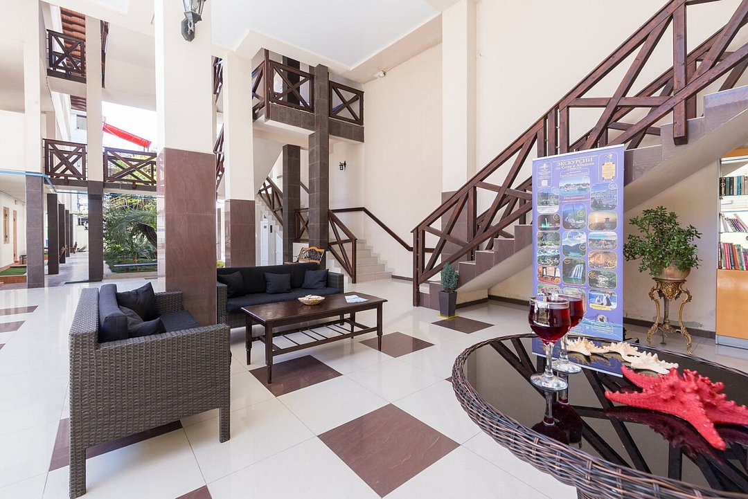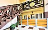 На первом этаже отеля работает кафе, в котором отдыхающим предоставляется полноценное комплексное питание. Достаточно сделать предварительную заявку на завтрак, обед или ужин. Меню включает блюда европейской и домашней кухни.