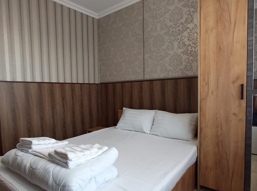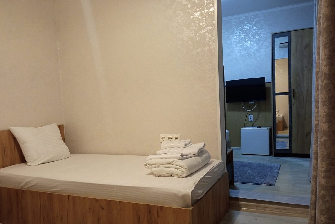 Корпус гостевого дома занимает небольшую территорию в 500 метрах от побережья. К услугам гостей номера разных категорий, в том числе имеются и бюджетные варианты с общим санузлом на две комнаты. Во всех номерах есть кондиционер, ЖК-телевизор и сеть wi-fi. На этажах в общем пользовании есть холодильник, микроволновая печь и электрочайник. Среди прочих услуг – стиральная машина.