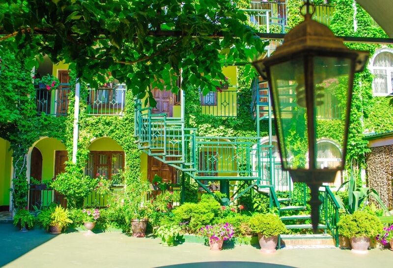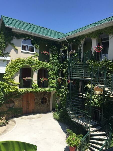 Трехэтажный корпус гостевого дома находится на закрытой территории, расположенной среди частого сектора. Уютный внутренний дворик, фасады гостевого дома, летние беседки красиво оплетены виноградной лозой. Жилой фонд, рассчитанный на 60 человек, предлагает гостям двухместные номера Стандарт. В каждом номере есть отдельный санузел с душем, кондиционер, телевизор, в некоторых комнатах имеются балконы.