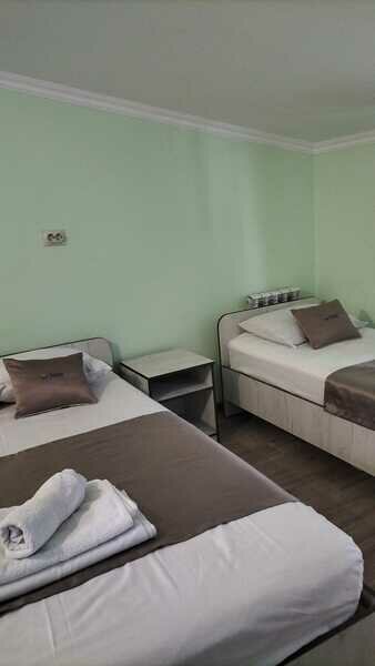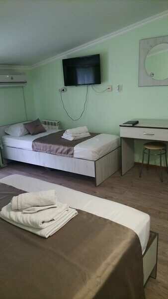 Номерной фонд «Травел Хотелс Ангелина» представлен 2-х, 3-х и 4-х местными номеров. В каждом из номеров имеется телевизор, холодильник, кондиционер и санузел с душем. При необходимости мы можем предоставить детскую кроватку и стульчик для кормления.