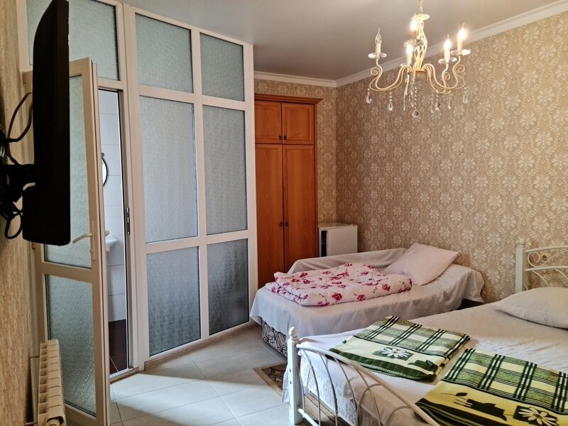 Каждый номер оборудован холодильником, а для приема пищи доступны обеденные столы на террасе. Рядом с гостевым домом находятся столовая и кафе, где гости могут насладиться вкусной едой. В окрестностях гостевого дома находятся пляжи Черного моря, летний театр, а также возможности для аренды велосипедов и посещения бассейна. Электричка, проходящая неподалеку, обеспечит удобное и доступное перемещение по всему побережью.