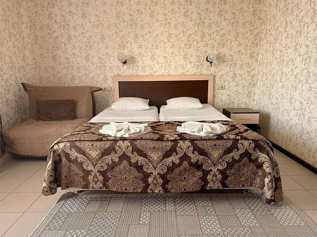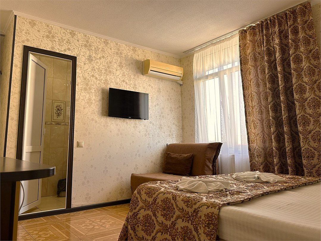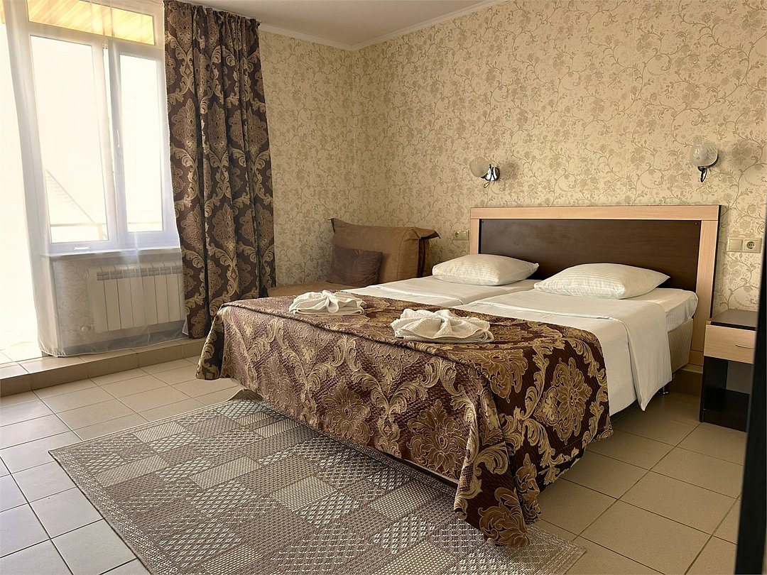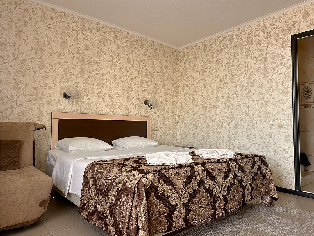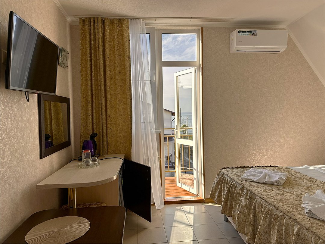 Уютный и светлый номер, который подойдет для спокойного отдыха вдвоем. Балкон позволяет наслаждаться свежим воздухом и видами, добавляя комфорта вашему пребыванию.Услуги и удобства