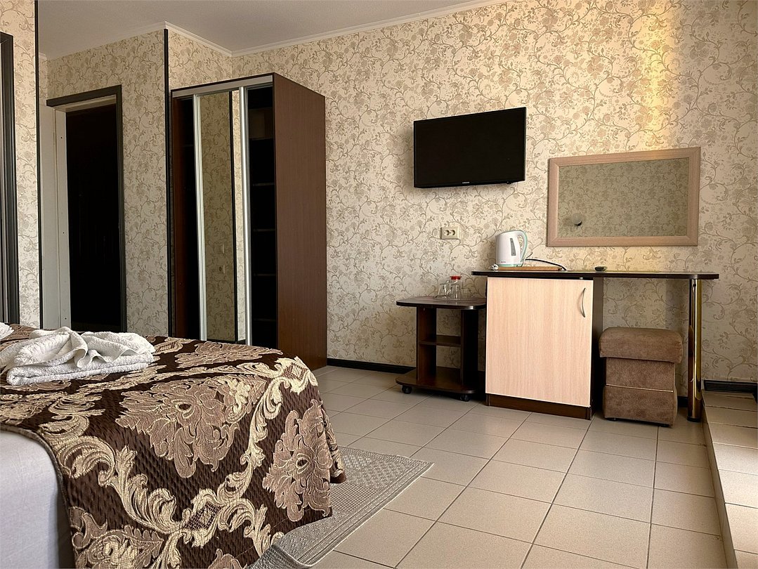 телевизор, кабельное телевидение, Wi-Fi, интернет, кондиционер, душевая кабина, банные полотенца, тапочки, две односпальные или большая двуспальная кровать, шкаф для одежды, зеркало, мыло, можно с питомцамиВ гостиничном номере