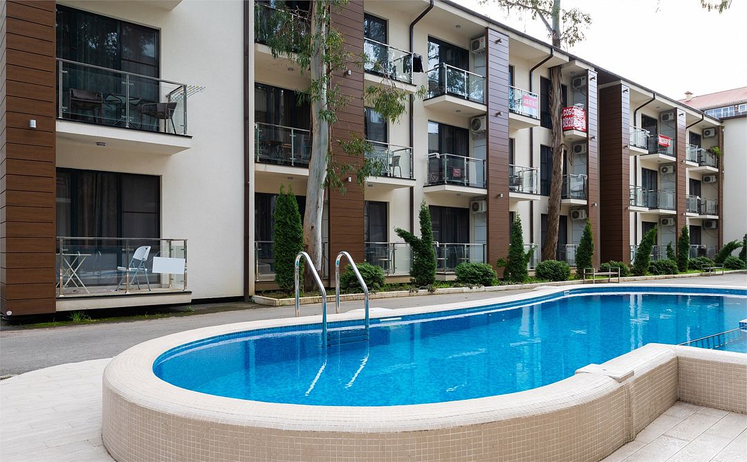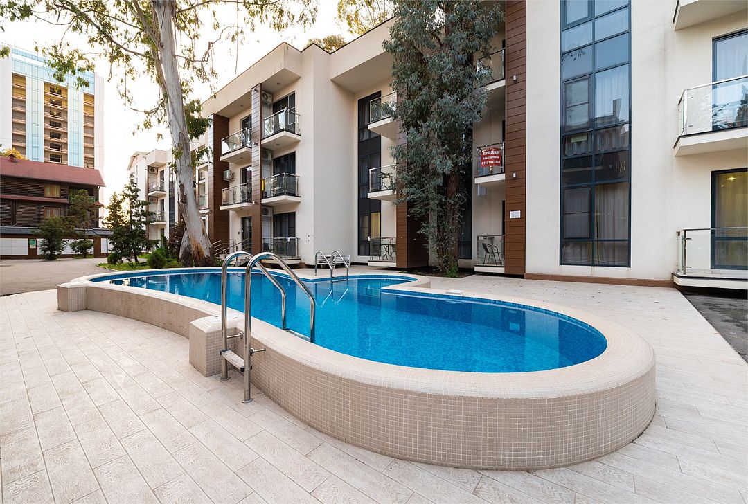 - С бассейном и собственным пляжем