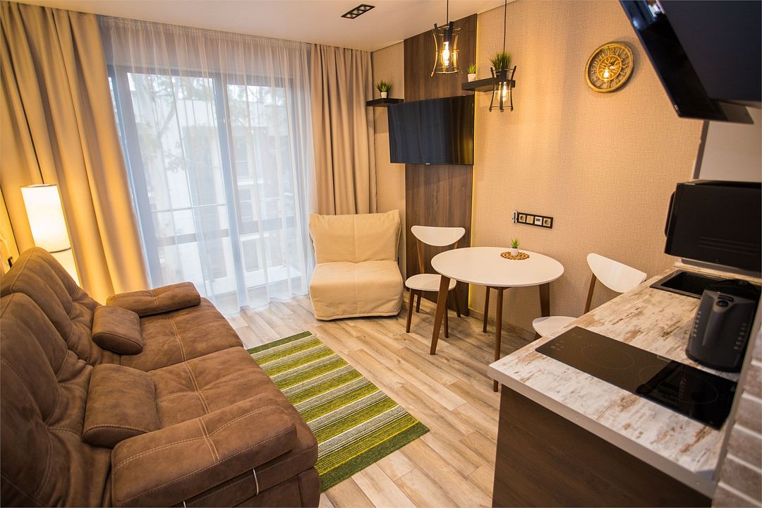 Все апартаменты отеля оснащены кухонными зонами, которые оборудованы всем необходимым, чтобы гости с комфортом готовили свои любимые блюда.