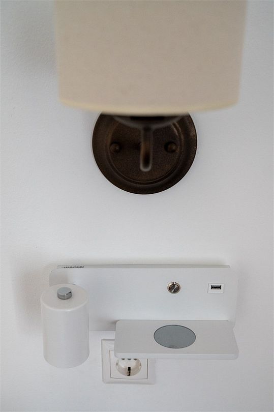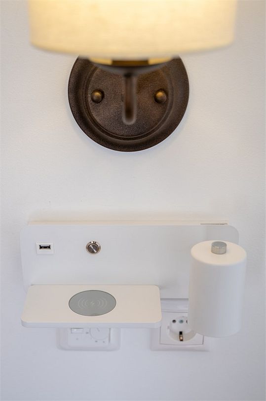 Номер оснащен бесконтактной зарядкой для телефона