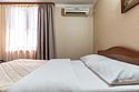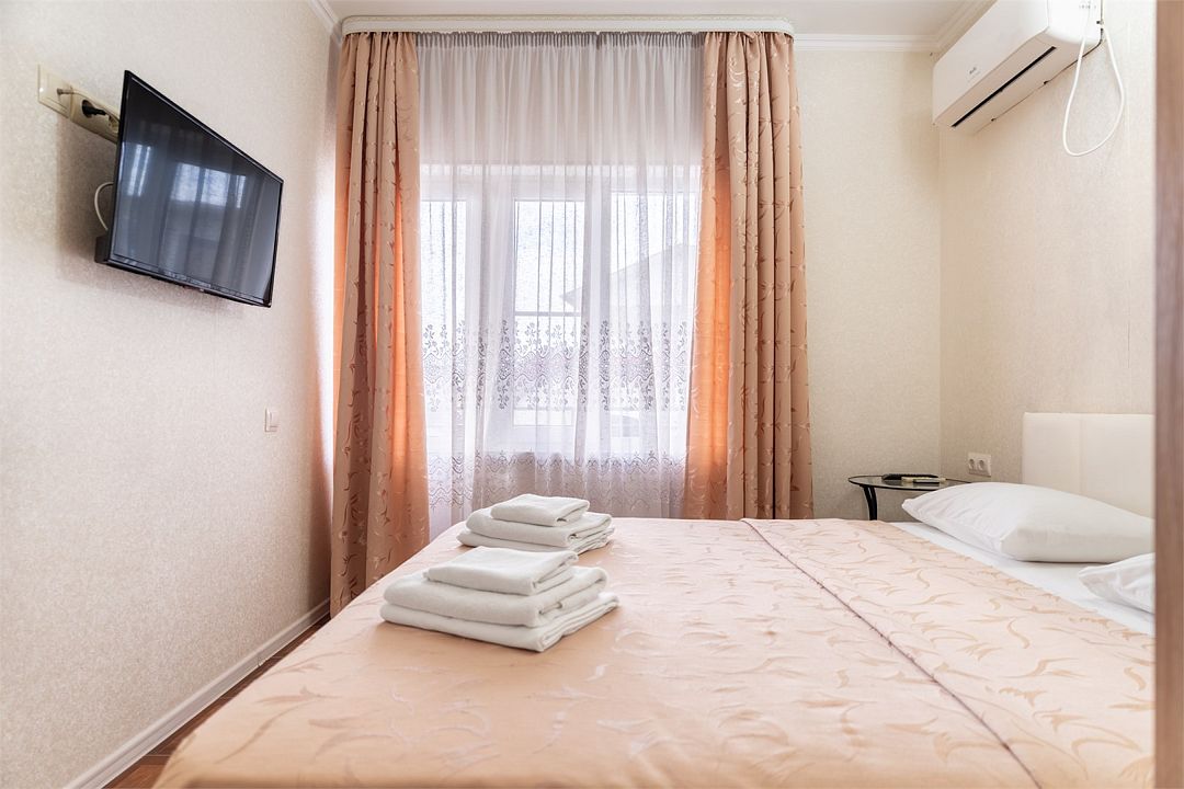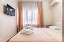 Светлый двухместный номер с двумя односпальными кроватями или одной двуспальной. Номер оснащен шкафом для одежды, прикроватными тумбочками, журнальным столиком, зеркалом. Для комфортного отдыха в номере имеется: кондиционер, холодильник, телевизор, постельное белье, полотенца для лица, тела, ног. В зимнее время работает отопление.Услуги и удобства