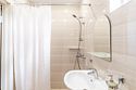 кабельное телевидение, Wi-Fi, холодильник, фен, ванная комната, банные принадлежности, банные полотенца, две односпальные или большая двуспальная кровать, шкаф для одежды, вешалки, письменный стол, зеркало, стиральная машина, чайник, унитаз, раковина, отопление, душ, вид на город, вид во двор, сплит-система, телевизор с плоским экраном, номер для некурящих, кресло-кровать, мыло, без питомцевВ номере