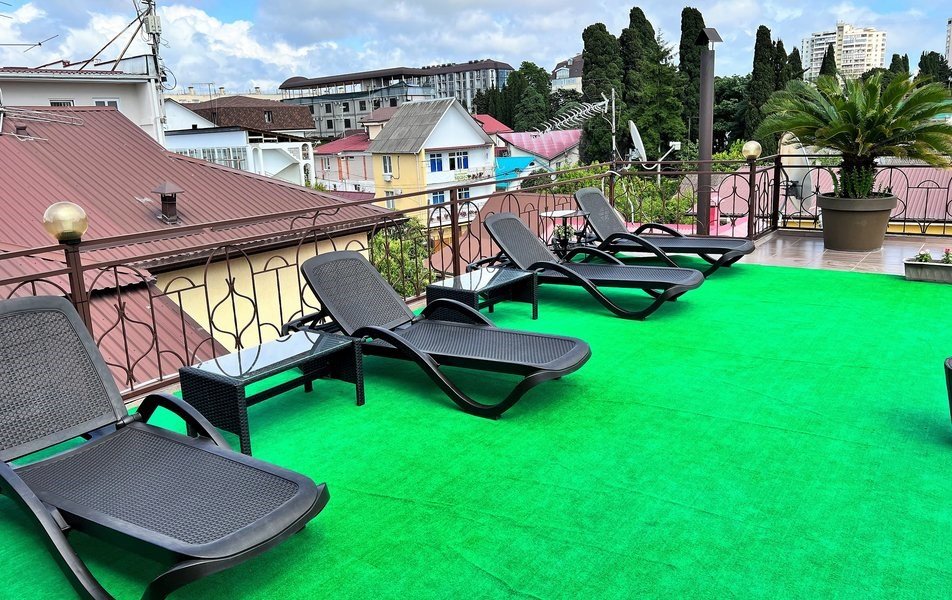 На крыше отеля установлен открытый бассейн и просторная терраса для загара с лежаками и зонтиками. Для маленьких гостей предусмотрена детская площадка. До железнодорожного вокзала «Адлер» 3 км, до аэропорта 4,4 км.