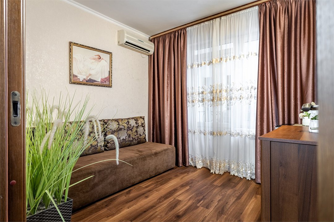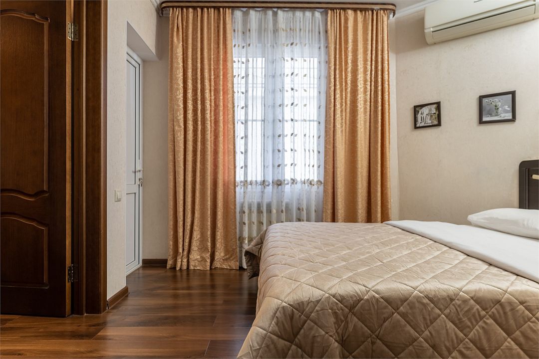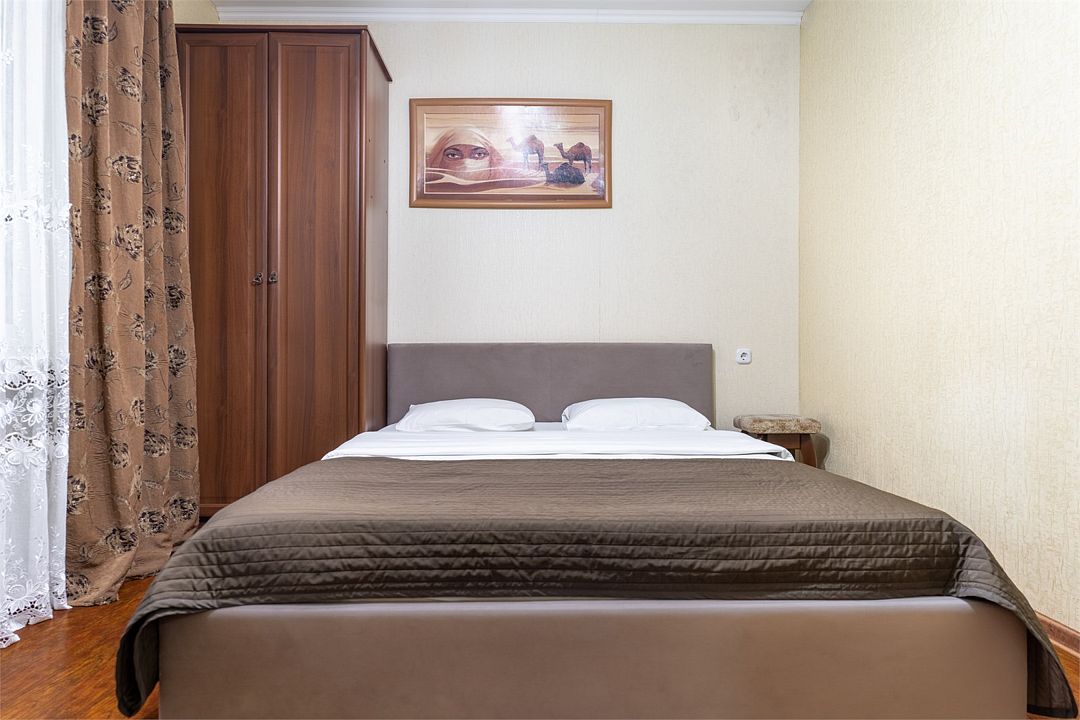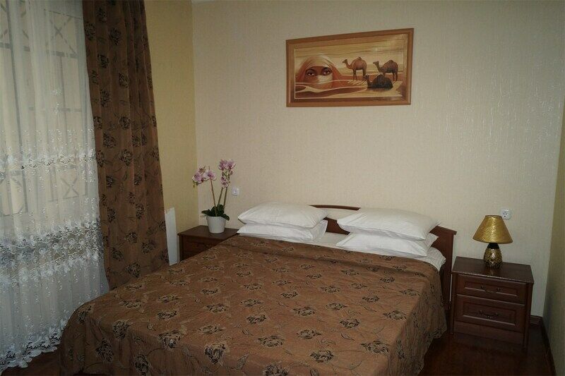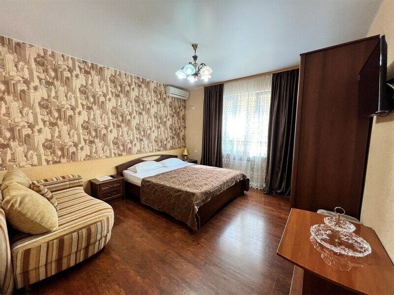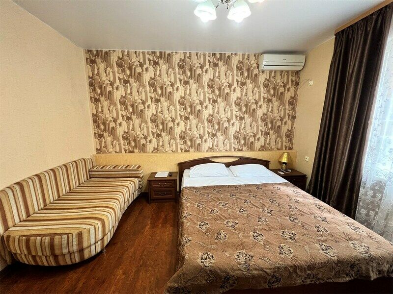 Двухкомнатный номер с двуспальной кроватью и диван-кроватью. В номере необходимый набор мебели, телевизор, кондиционер, холодильник. Собственная ванная комната.Услуги и удобства