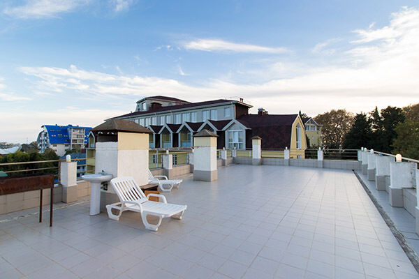 В гостевом доме работает кафе, график которого с 09.00 до 21.00. На крыше имеется мангал.