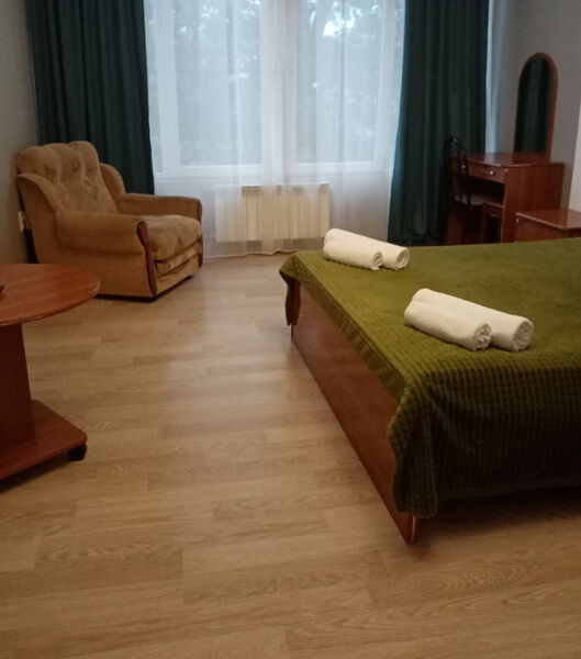 В просторных светлых классических номерах, из техники и мебели имеется самое необходимое, что может понадобиться во время хорошего отдыха.