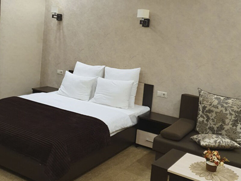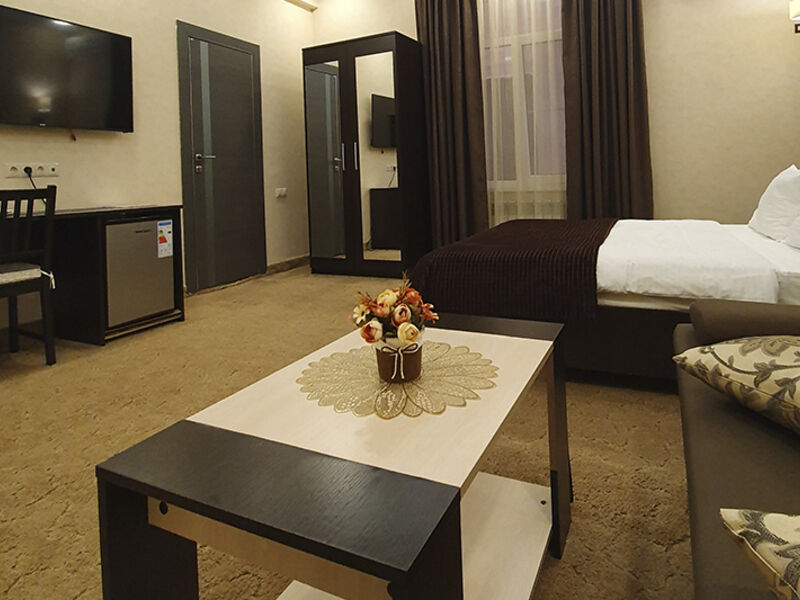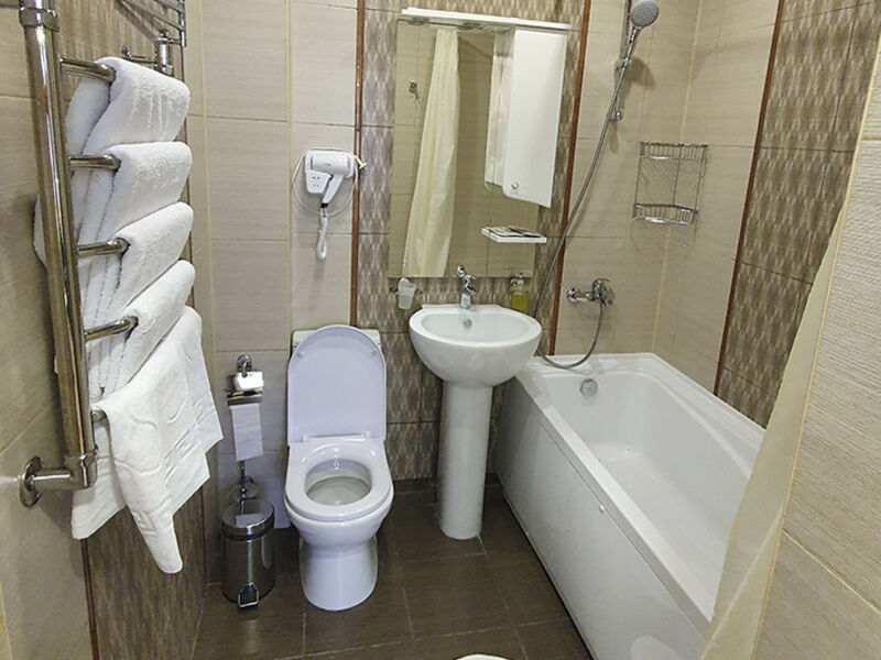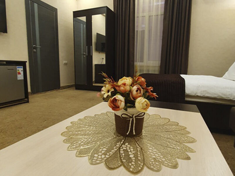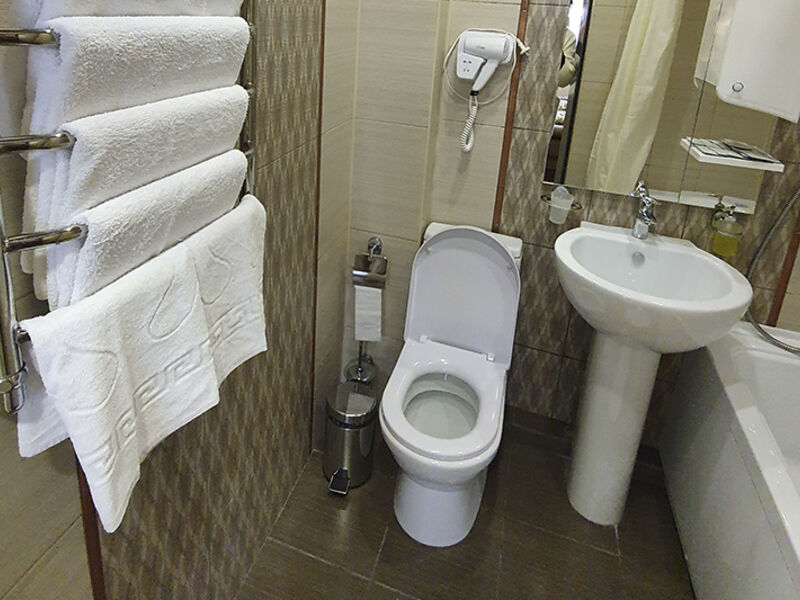 Все номера оснащены собственными санузлами, плазменными ТВ, холодильниками, сплит системами, так же в каждом номере отеля имеется фен, ванные принадлежности, по 3 полотенца на каждого гостя, шкафы, письменный стол.