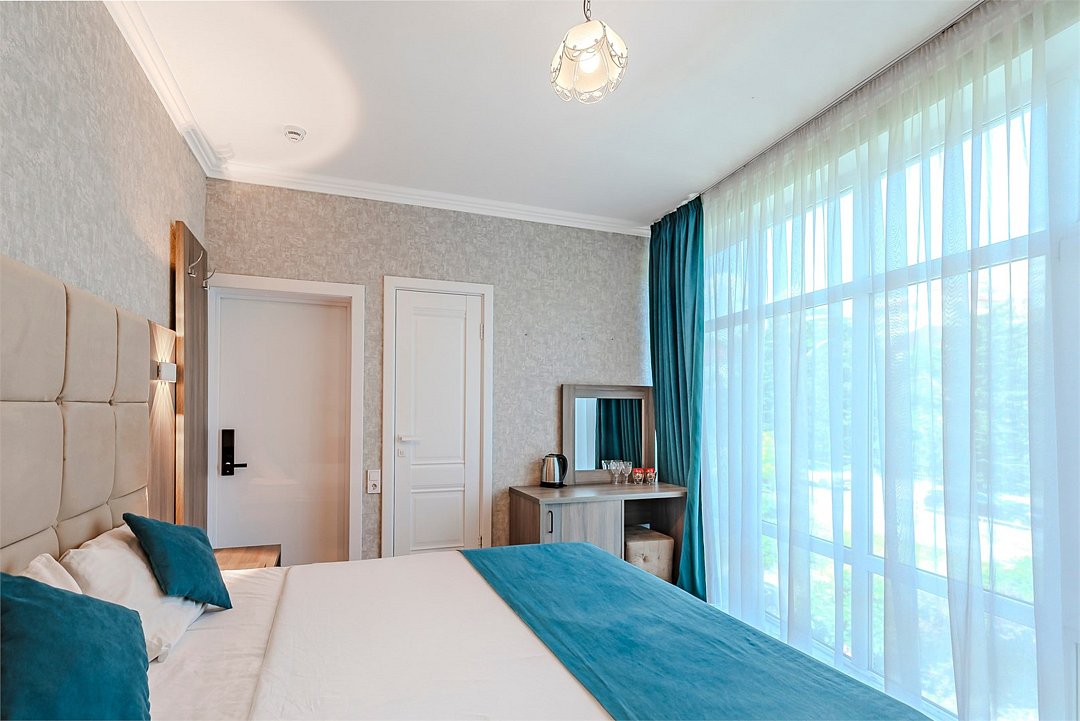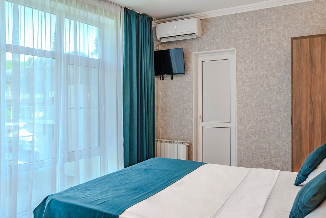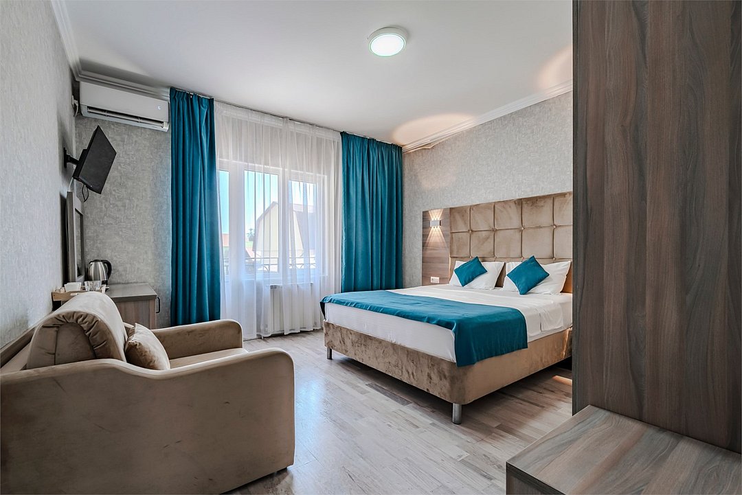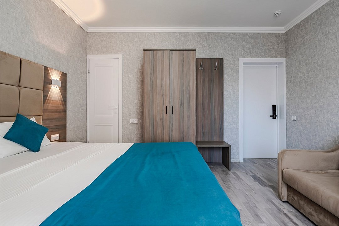 Тот же «Комфорт», но для компании побольше. Красивый и комфортный, он подарит незабываемую атмосферу для отдыха благодаря удобной мебели, уютному дизайну, правильному техническому оснащению и вниманию к мелочам. Выбирая этот номер, вы можете быть уверены – вас ждут великолепный сервис, качественное обслуживание и прекрасные условия для расслабления. Номера данной категории оснащены двуспальной кроватью размера «queen-size» с мягким изголовьем и высококачественными ортопедическими матрасами. Дополнительное спальное место - это удобное раскладное кресло.Услуги и удобства